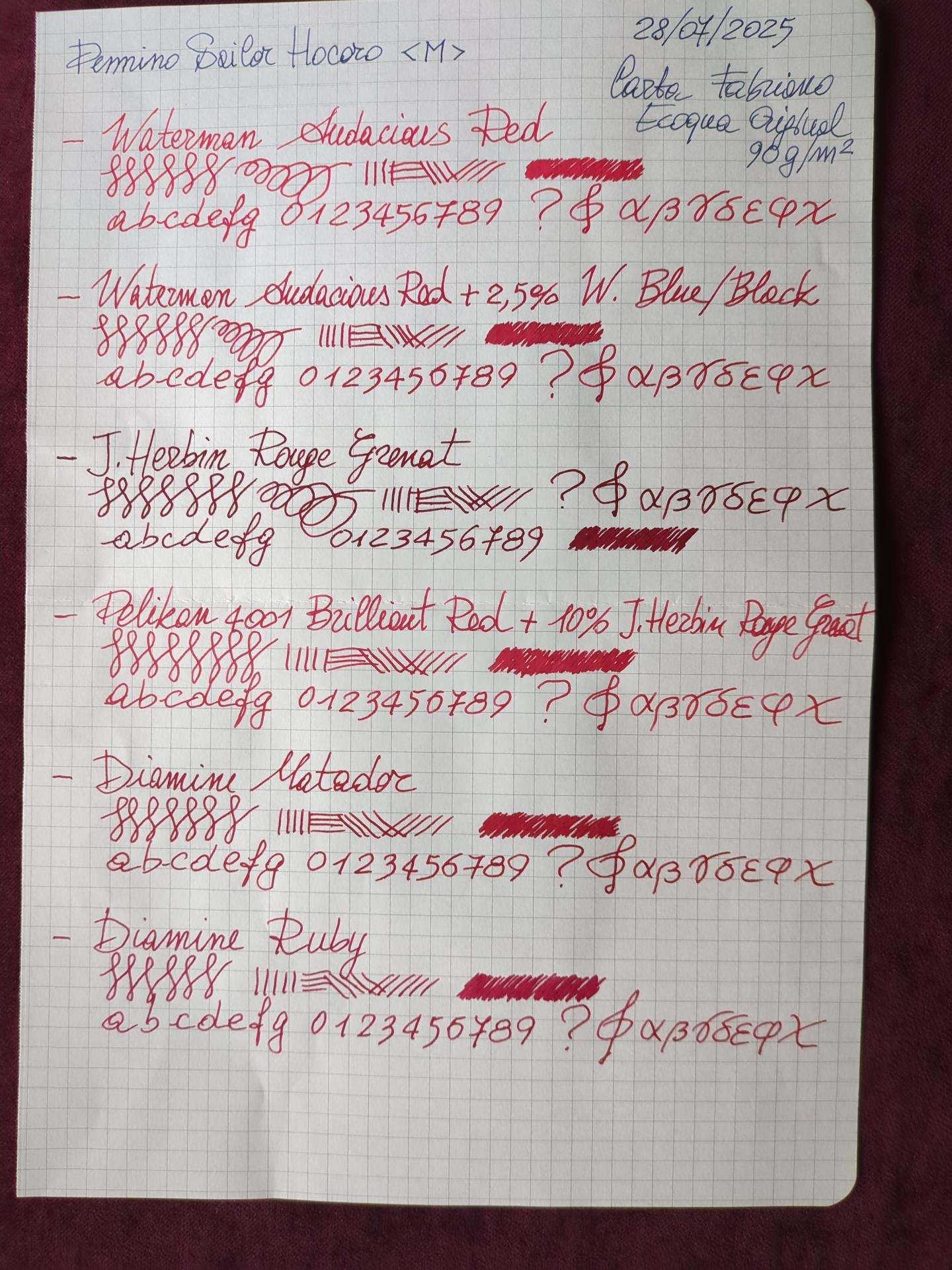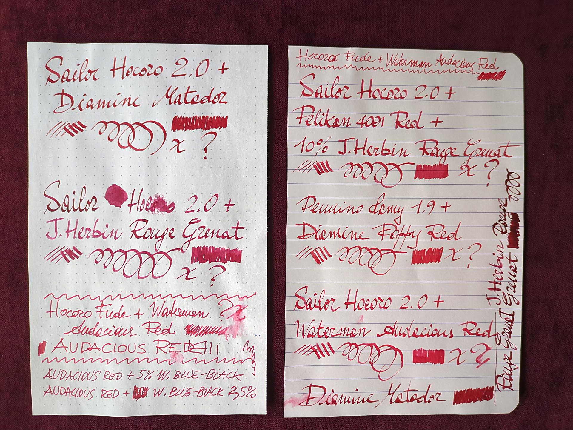 Il primo è stato un grande inchiostro, ormai fuori produzione: Parker Quink Red, tracciato su carta Rhodia 80 g/mq da una Parker Vector M.