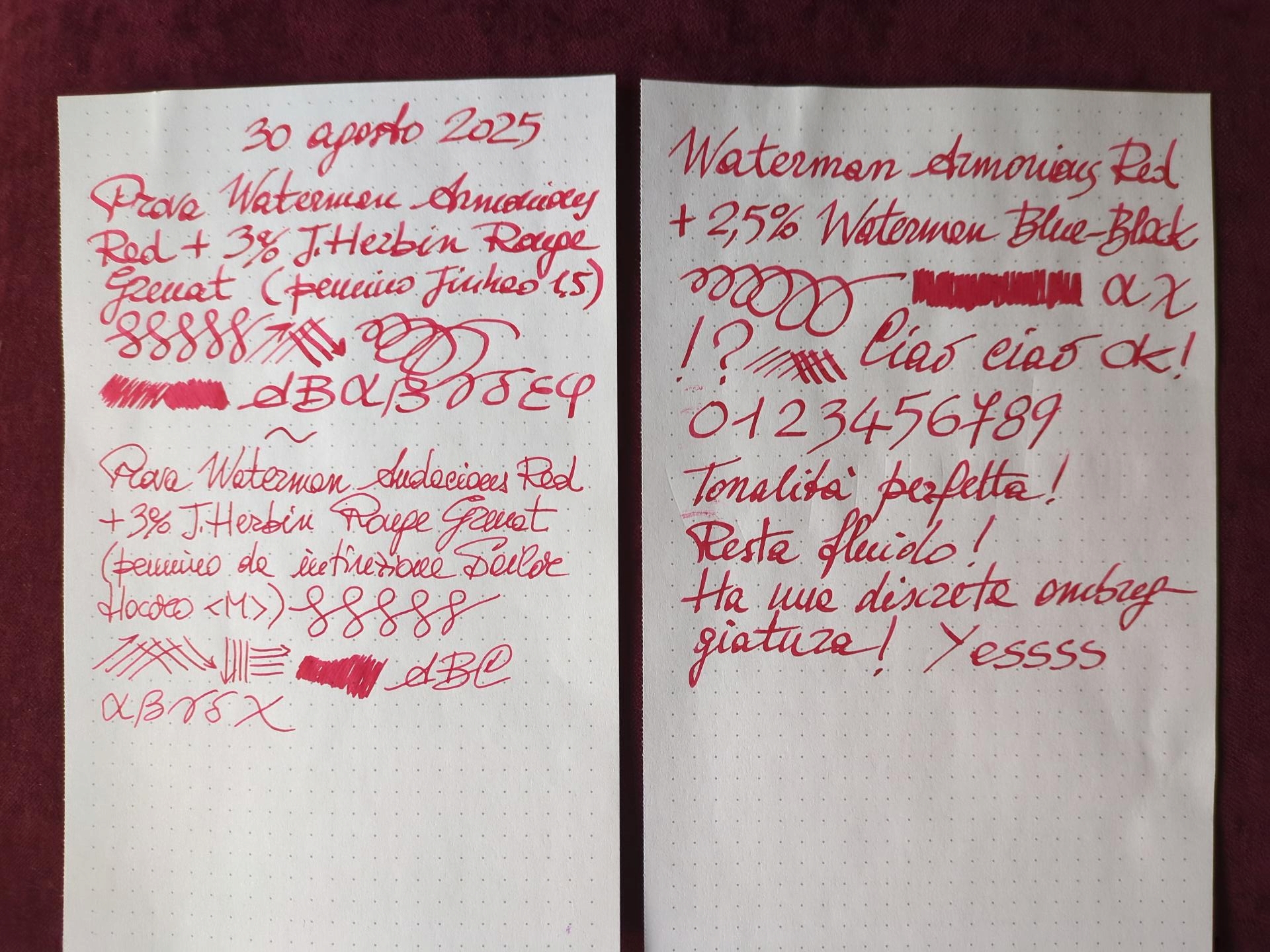 Fai almeno questa prova, anche se è improbabile che possa cambiare la tonalità, semmai aumentare un po' la saturazione:AinNithael ha scritto: ↑martedì 21 ottobre 2025, 10:36 In sintesi. Mi tengo la caterva di cartucce rosso Pilot, ne svuoto una o rimetto il meraviglioso converter e carico uno dei rossi belli che ho già. O uso la circostanza quale scusa per comprarne altri