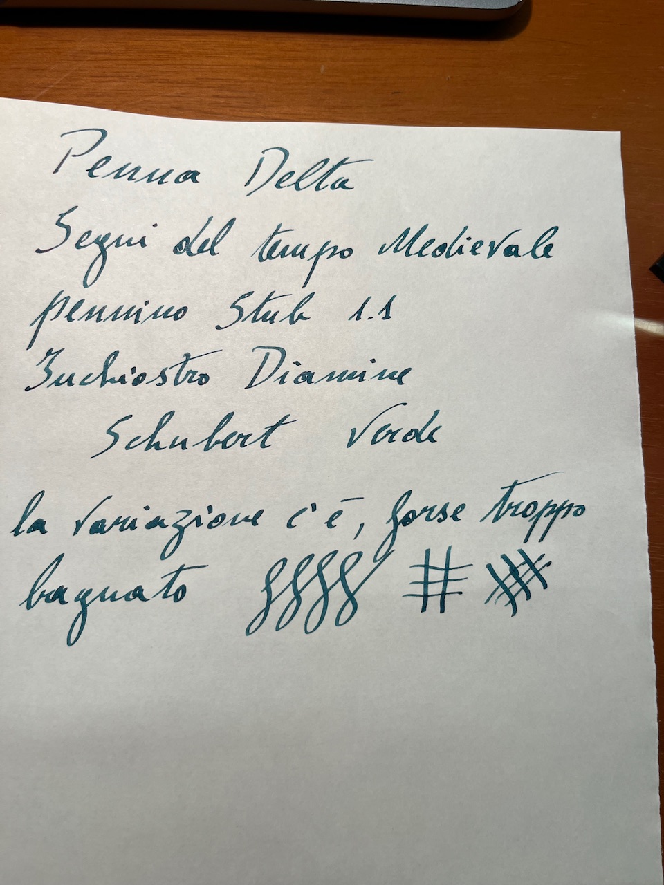 E molto gradevole vedere una stilografica italiana che non pecca di gigantismo. Brava Delta. Ora Delta dovrebbe fare un passettino in più e proporre questa stilografica anche nella fascia media/medio alta con un pennino in oro.