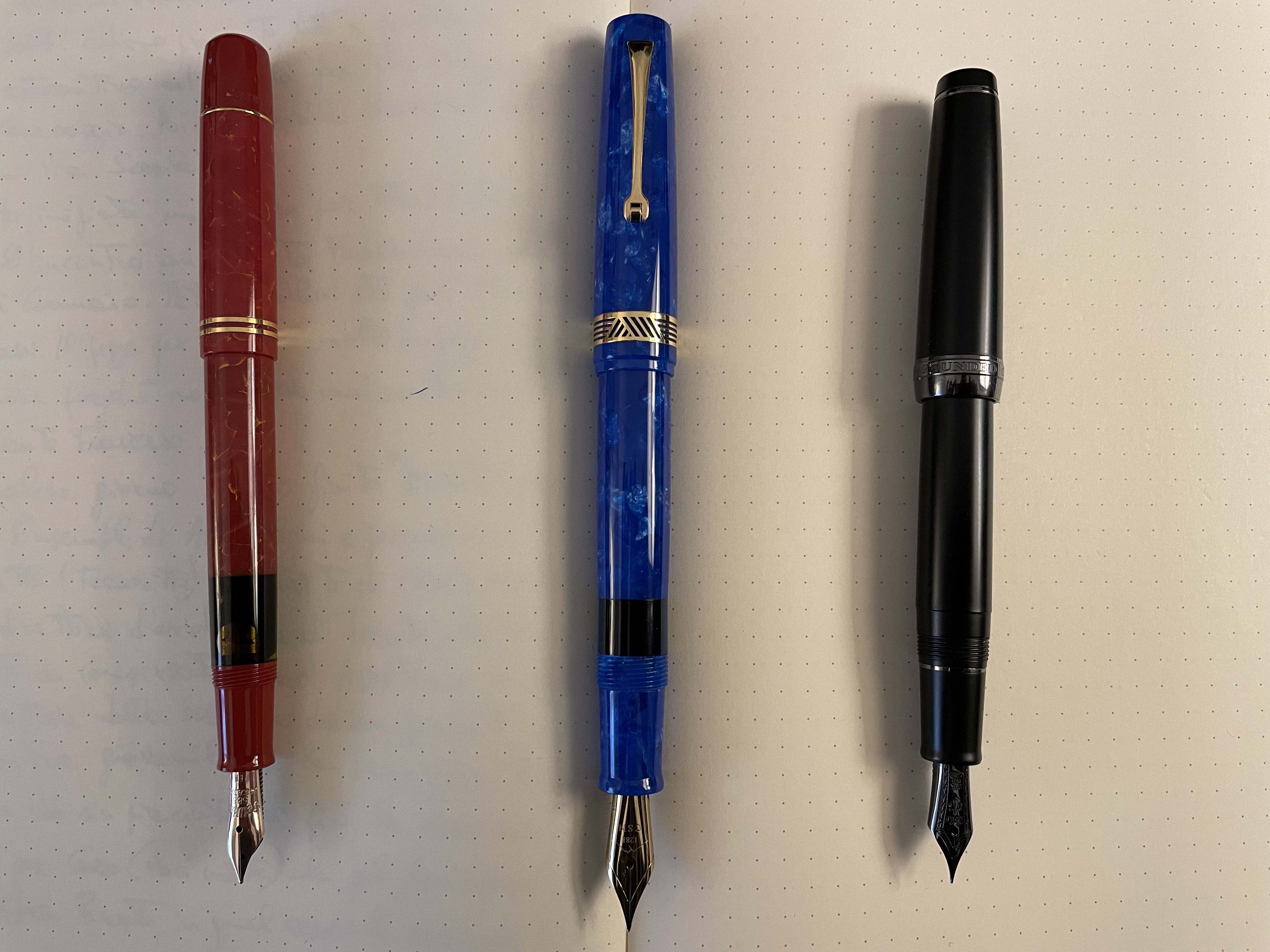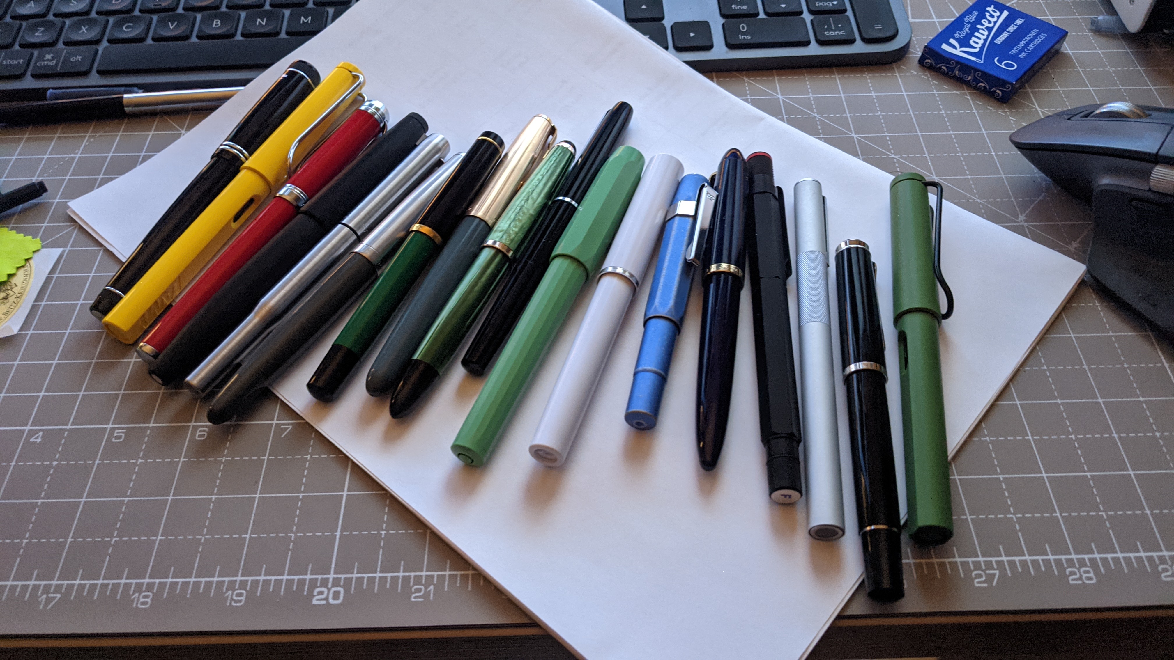 Alcune non le usavo da tre settimane (me ne porto una al lavoro a turno) ma ieri sera tutte partite al primo colpo che fossero nobili o plebee, care od economiche, nuovissime o vintage, a cartuccia, converter o pistone e con inchiostri di marche diverse nessuna di loro ha fatto una piega.