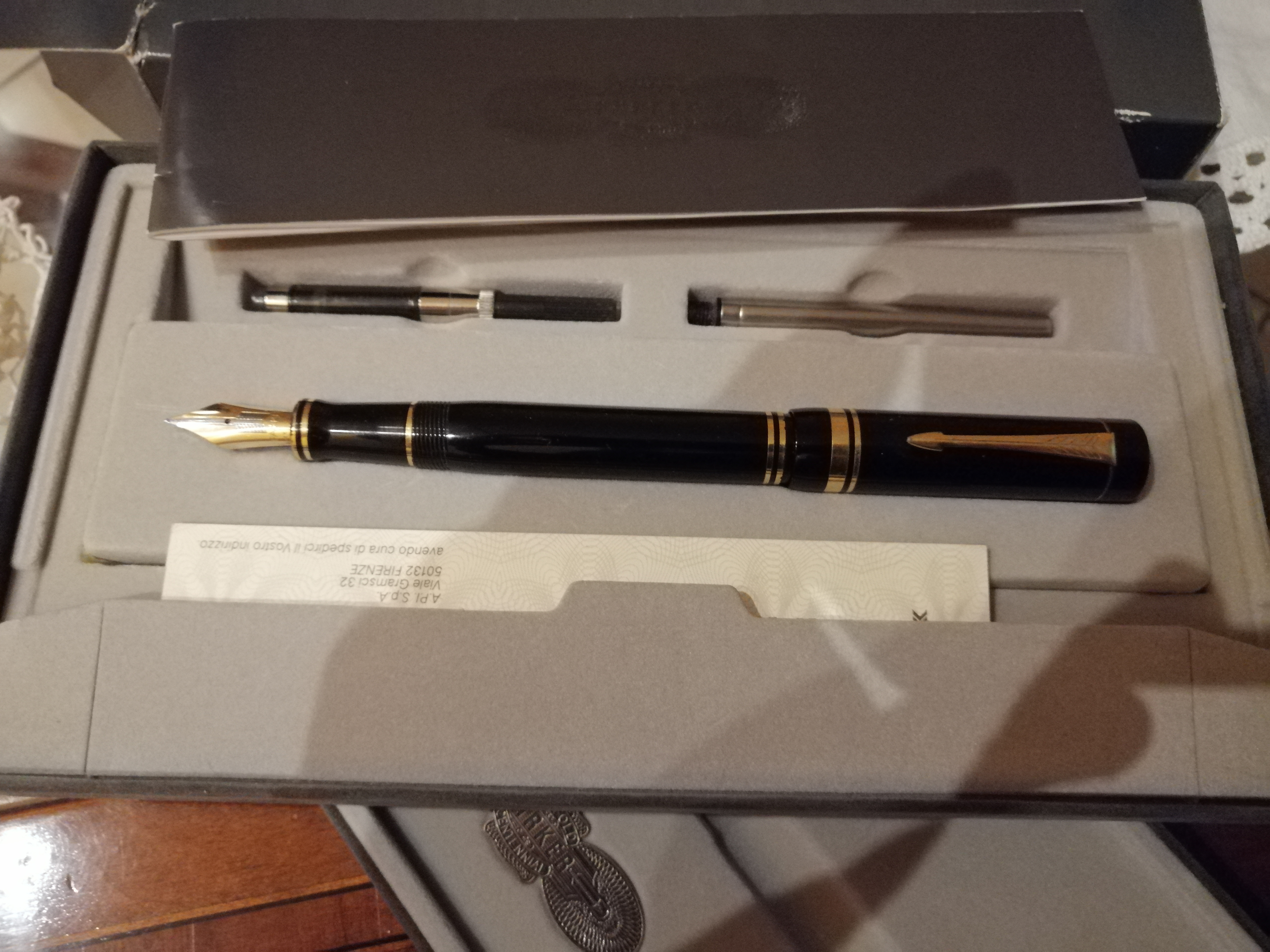 Grazie all'utente Linos, ho potuto acquistare, ad un ottimo prezzo, ed in ottime condizioni, un set Aurora Auretta Lusso, composto da stilografica e penna a sfera. Ringrazio il venditore per il servizio eccellente e per la serietà: la descrizione degli oggetti era precisissima, e confermata nei fatti.