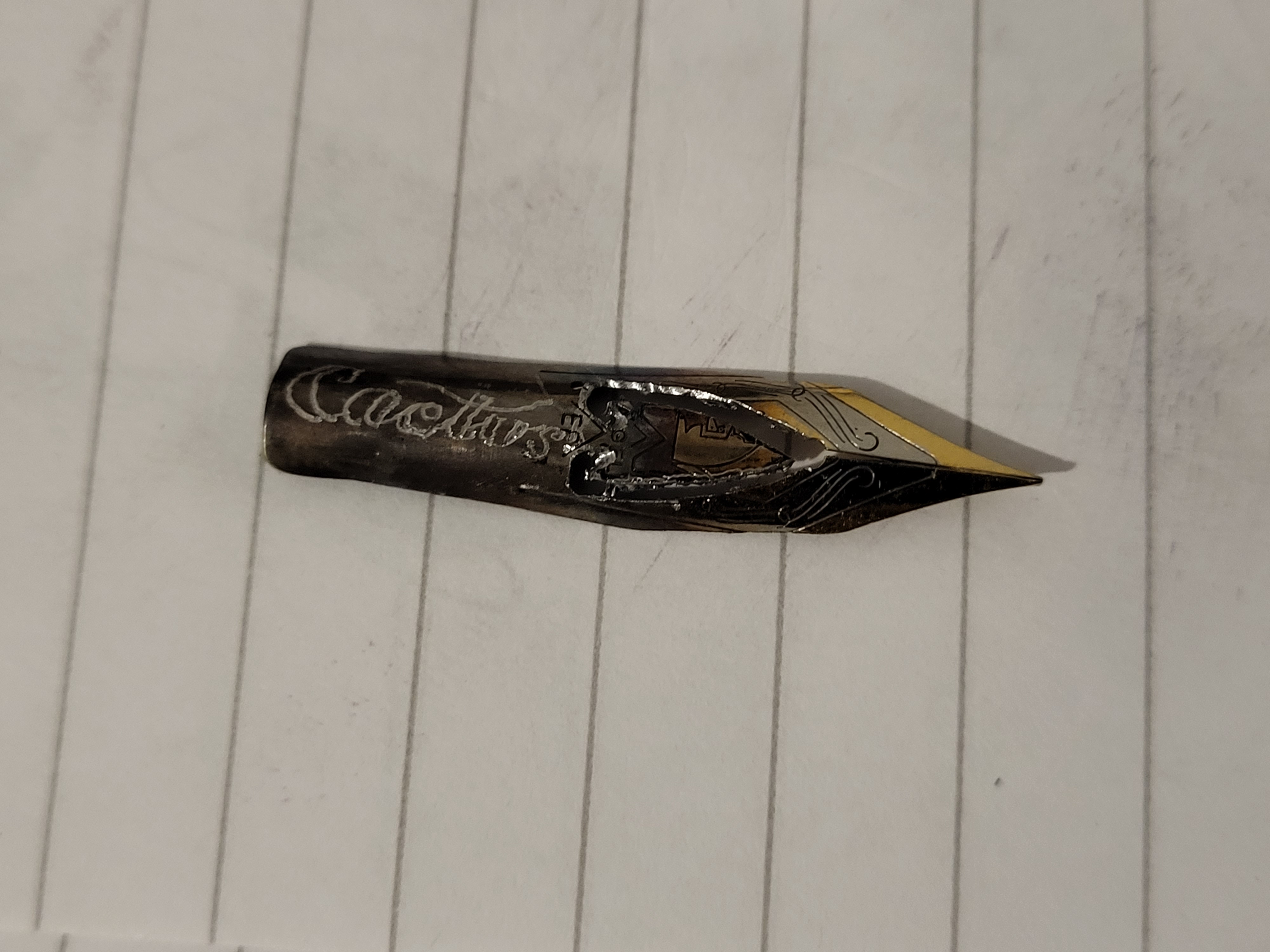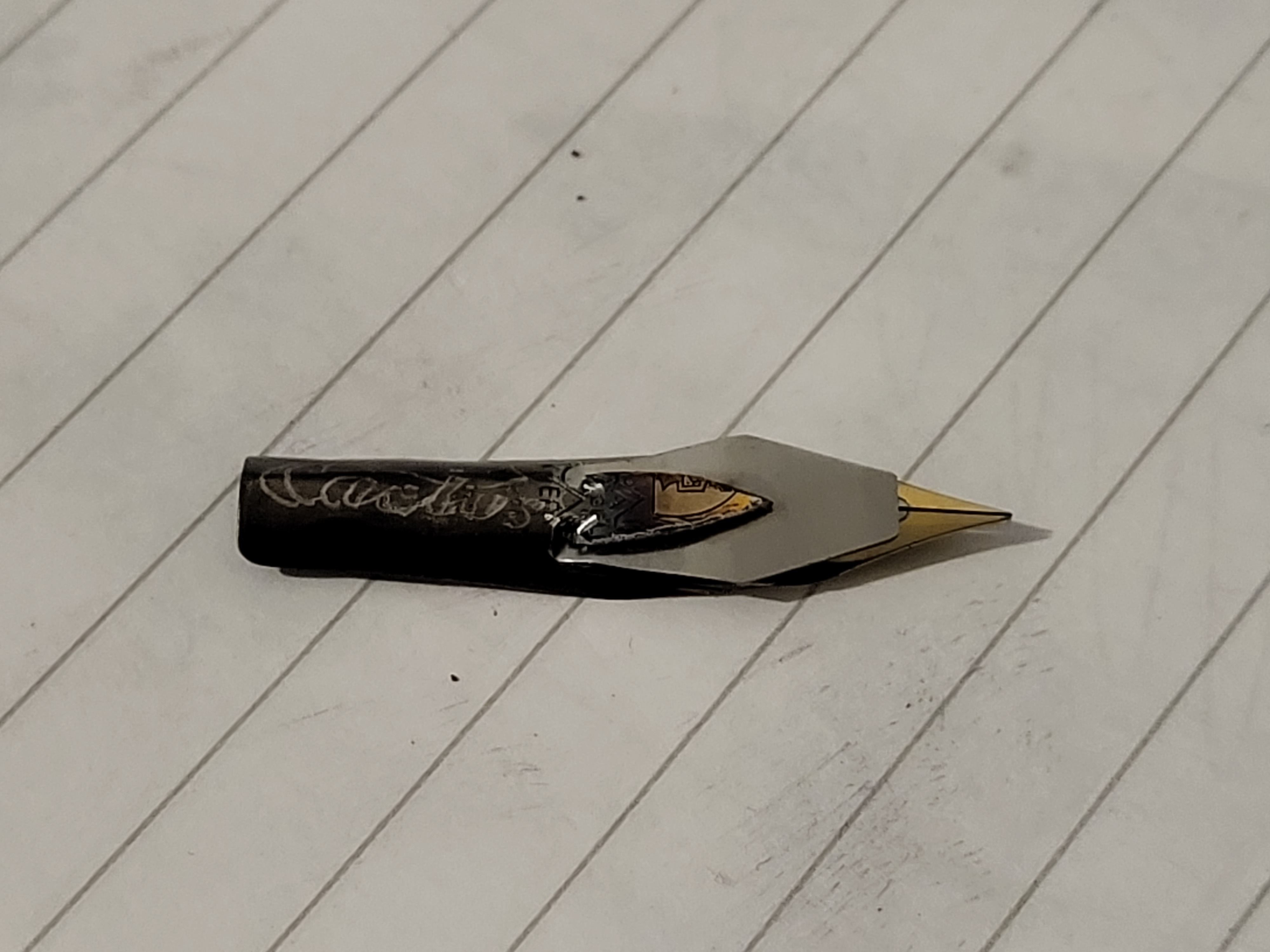 Ma più di tutto, i vostri tentativi mi ricordano questo pennino cameron con una fantastica giunta saldata sopra: viewtopic.php?t=14800