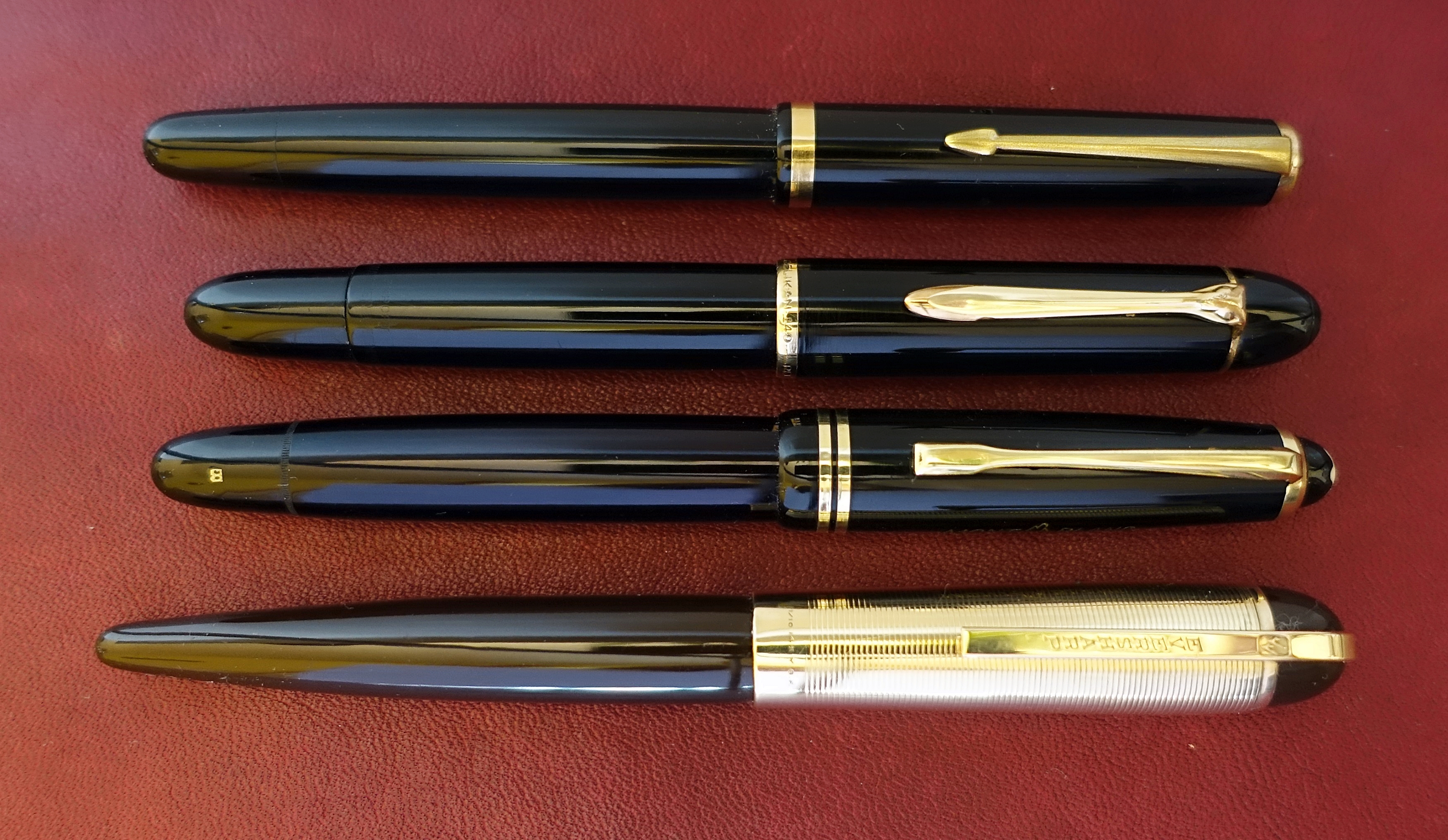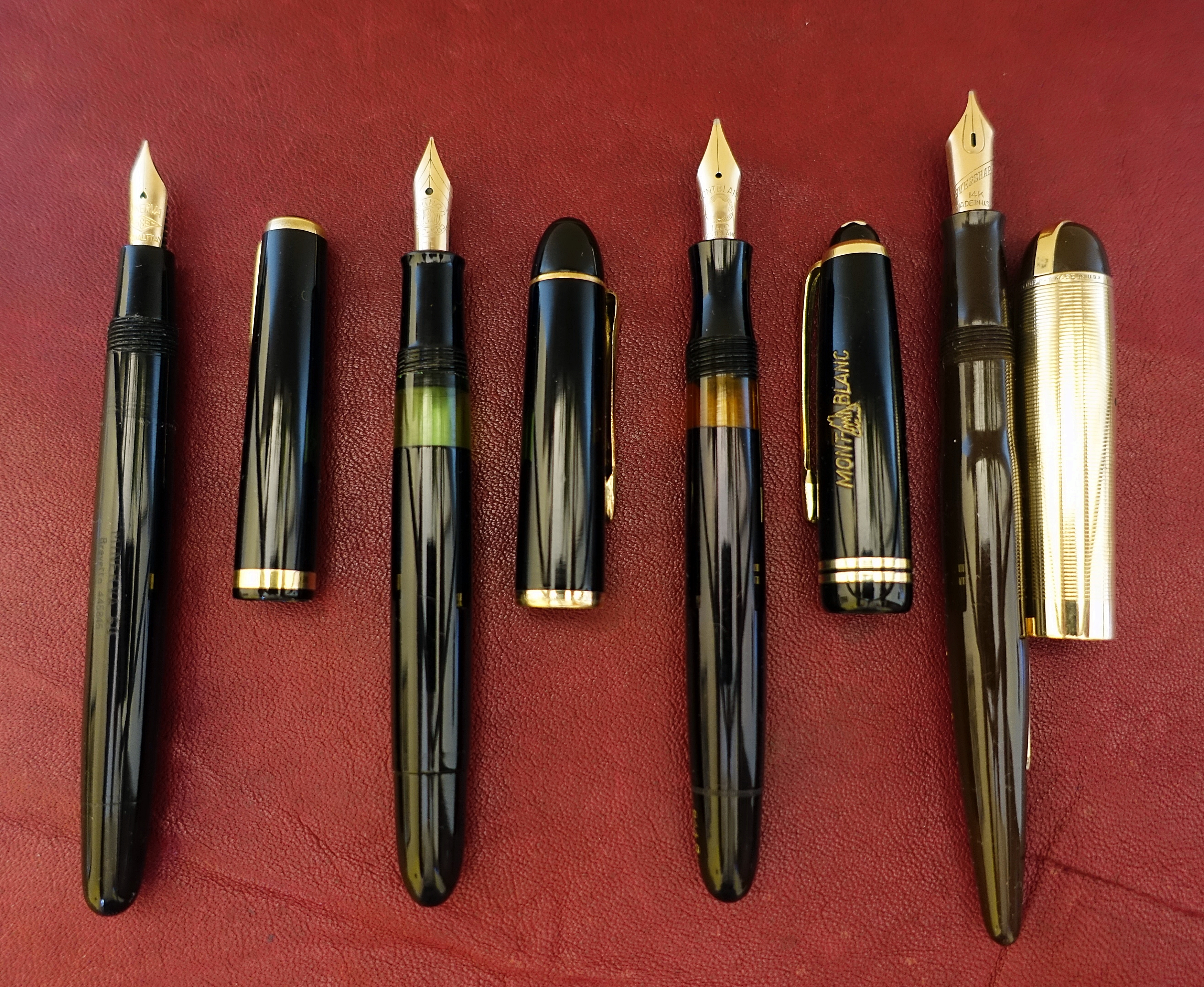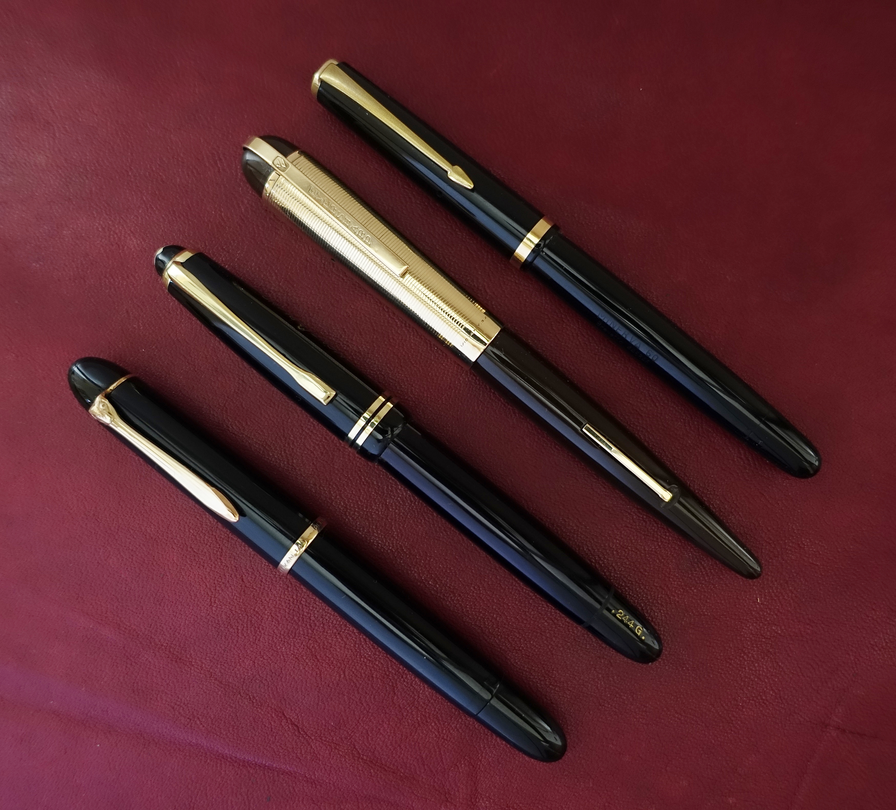 Ultimi acquisti. Minerva 60, Pelikan 140 primo modello, clip stretta e, scritte sul fondo del fusto, Montblanc 244G, Eversharp Skylab. Tutte in splendido stato, la 244G non ha mai visto l'inchiostro, praticamente nuova, le altre lo hanno visto di passaggio, credo poco.