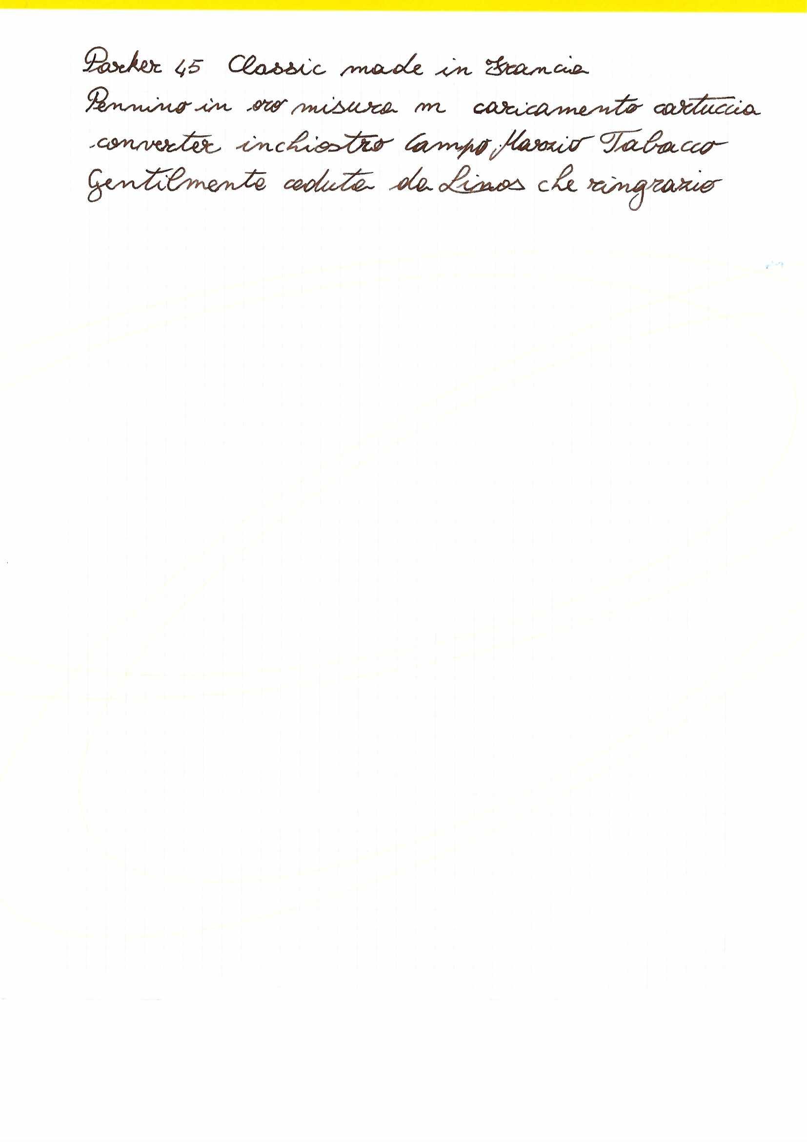 Pippo ha scritto: venerdì 15 luglio 2022, 10:15 Attendendo di trovare una 351-2 nel mercatino sotto casa, una piccola classica stilografica: Parker 45 costruita in Francia :wave: