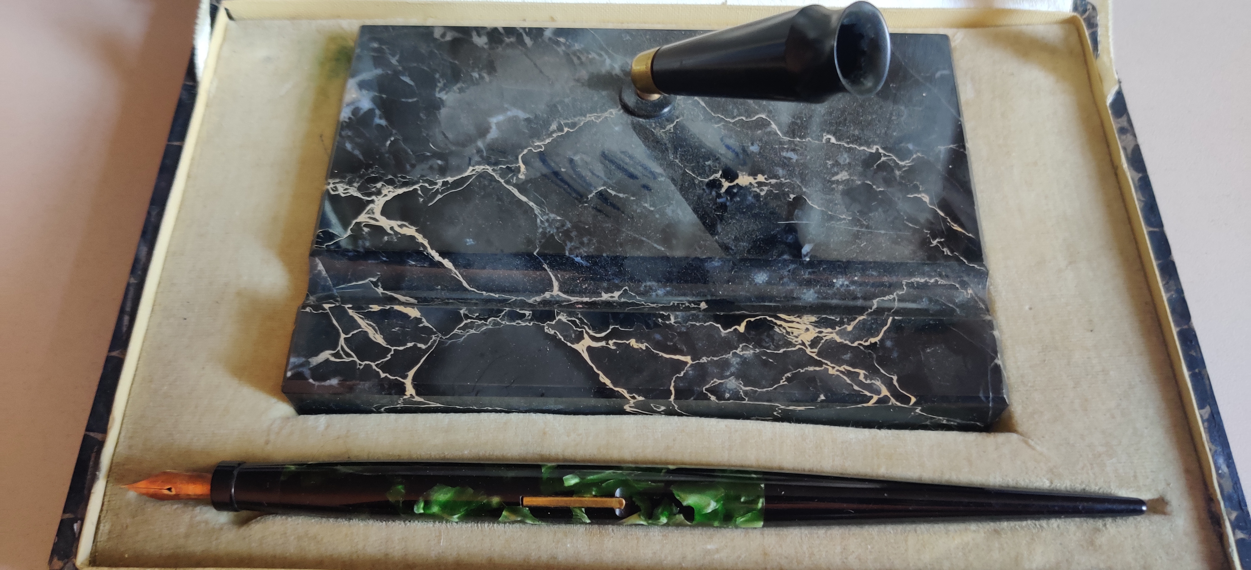 Pippo ha scritto: venerdì 15 luglio 2022, 18:44 Oggi mi sono concesso un mercatino ed ho trovato questo stiloforo. La scatola è piuttosto malandata ma il prezzo mi è sembrato appropriato.... Che ne dite: mezza sola? Le foto sono ignobili, scusate spero di ritrovare la macchina fotografica!!!