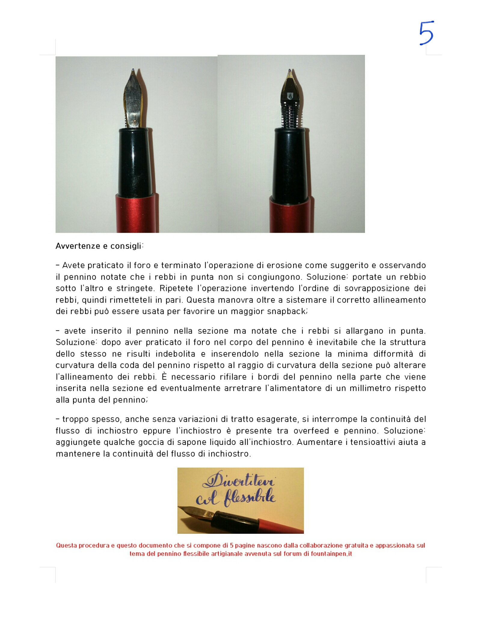 Quindi si tratta di scelte dettate soprattutto dalla praticità. Realizzare un buon flessibile (sino a 3 mm e oltre) senza dover perdere troppo tempo a perfezionare l'accoppiamento pennino/alimentatore. Del resto parliamo di un intervento da eseguire su penne pensate per altro. Penne che uscite di fabbrica hanno già un equilibrio loro perfetto. Per cui bisogna intervenire cercando di preservare quell'equilibrio.