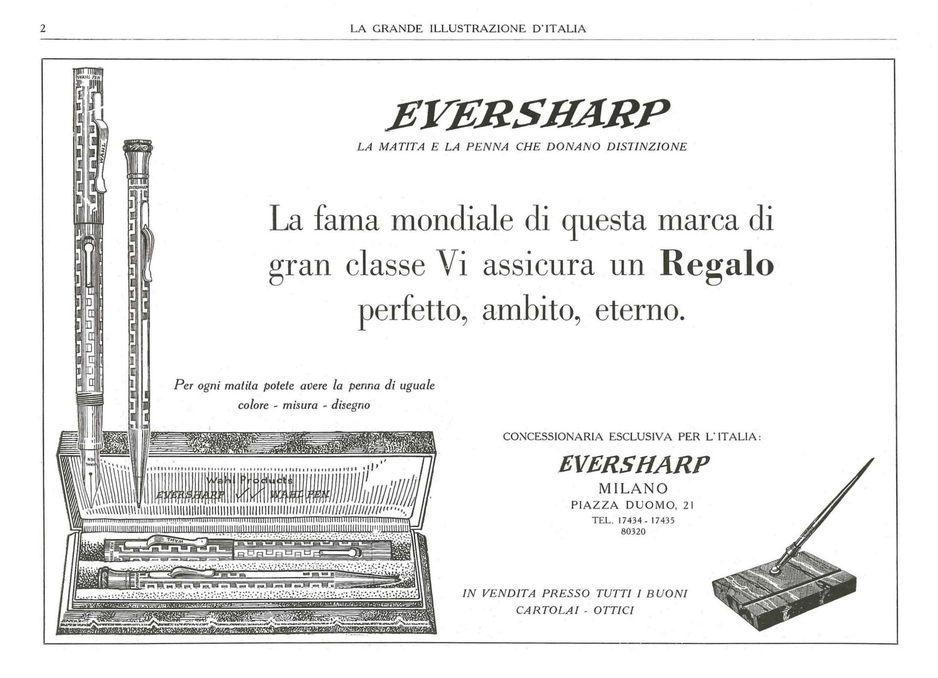 EVERSHARP - All metal in set - 1931-01. La Grande Illustrazione d'Italia - Anno VIII, N.1 - pag.2.