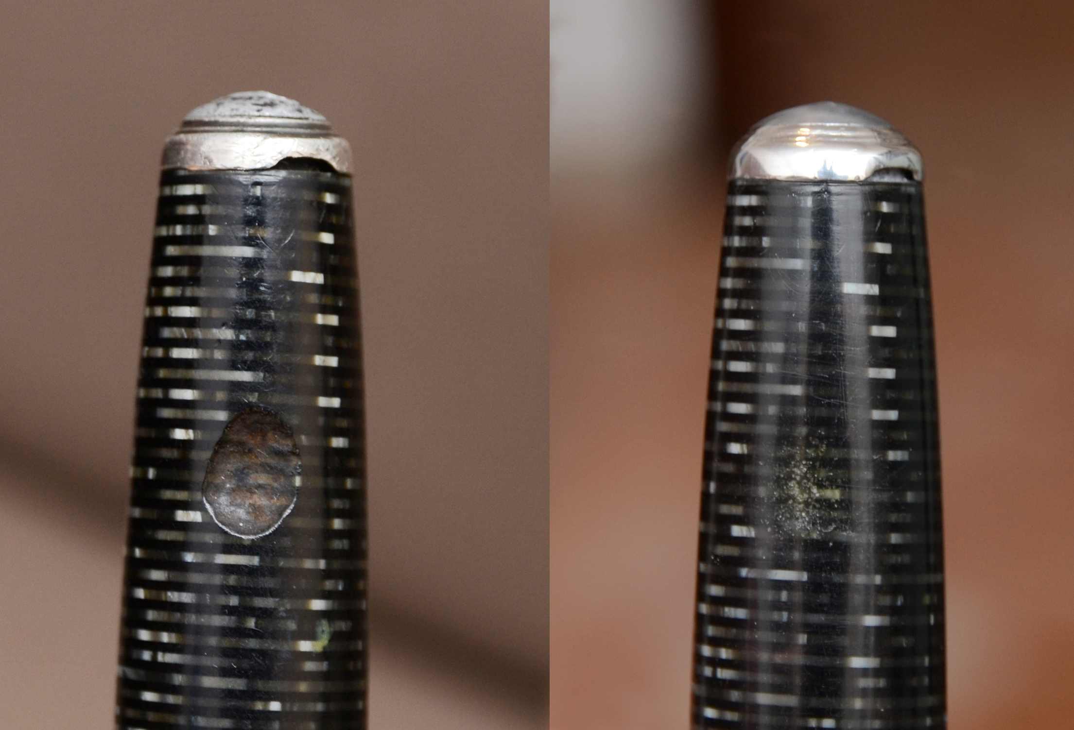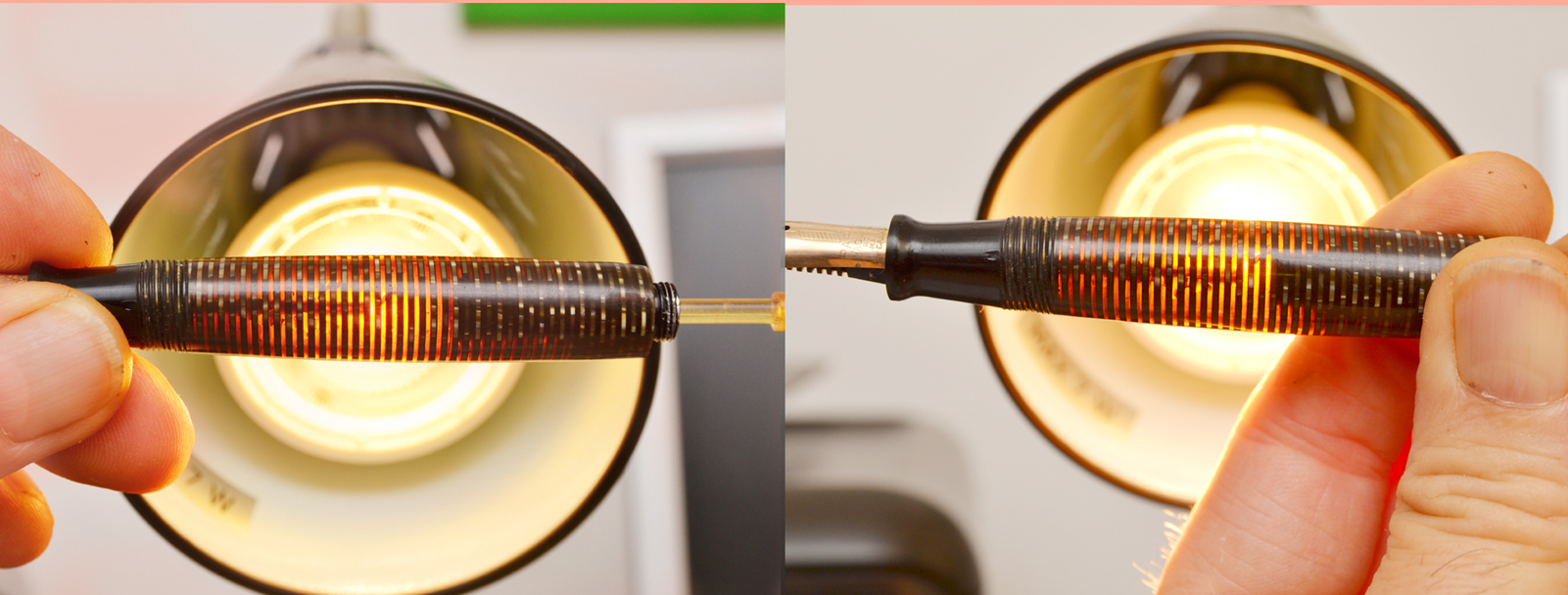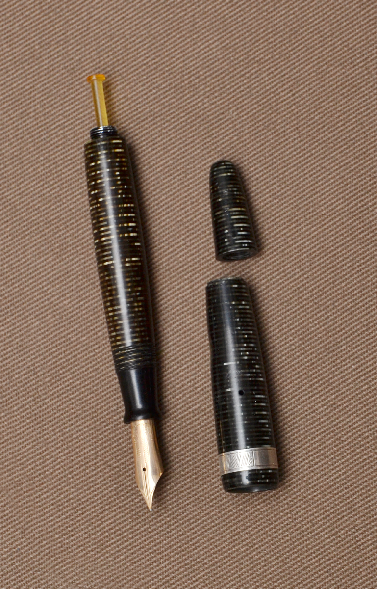 E' possibile che abbia la parte che ti si è rotta; devo verificare se è cos e se è in condizioni decenti. Comunque sia le Vacumatic sono penne diffusissime e non dovrebbe essere poi difficile recuperarne una.maxpop 55 ha scritto:Riuscendo a liberare la filettatura si.