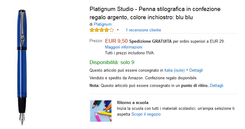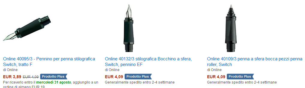 La mia idea è che quei venditori di ebay in realtà non hanno le penne, ma rivendono prodotti di amazon. Infatti quando è aumentato il prezzo su amazon un altro venditore che stavo seguendo su ebay e le vendeva a pochissimo ha immediatamente modificato l'inserzione e tirato su il prezzo.Pettirosso ha scritto:Idem con me...