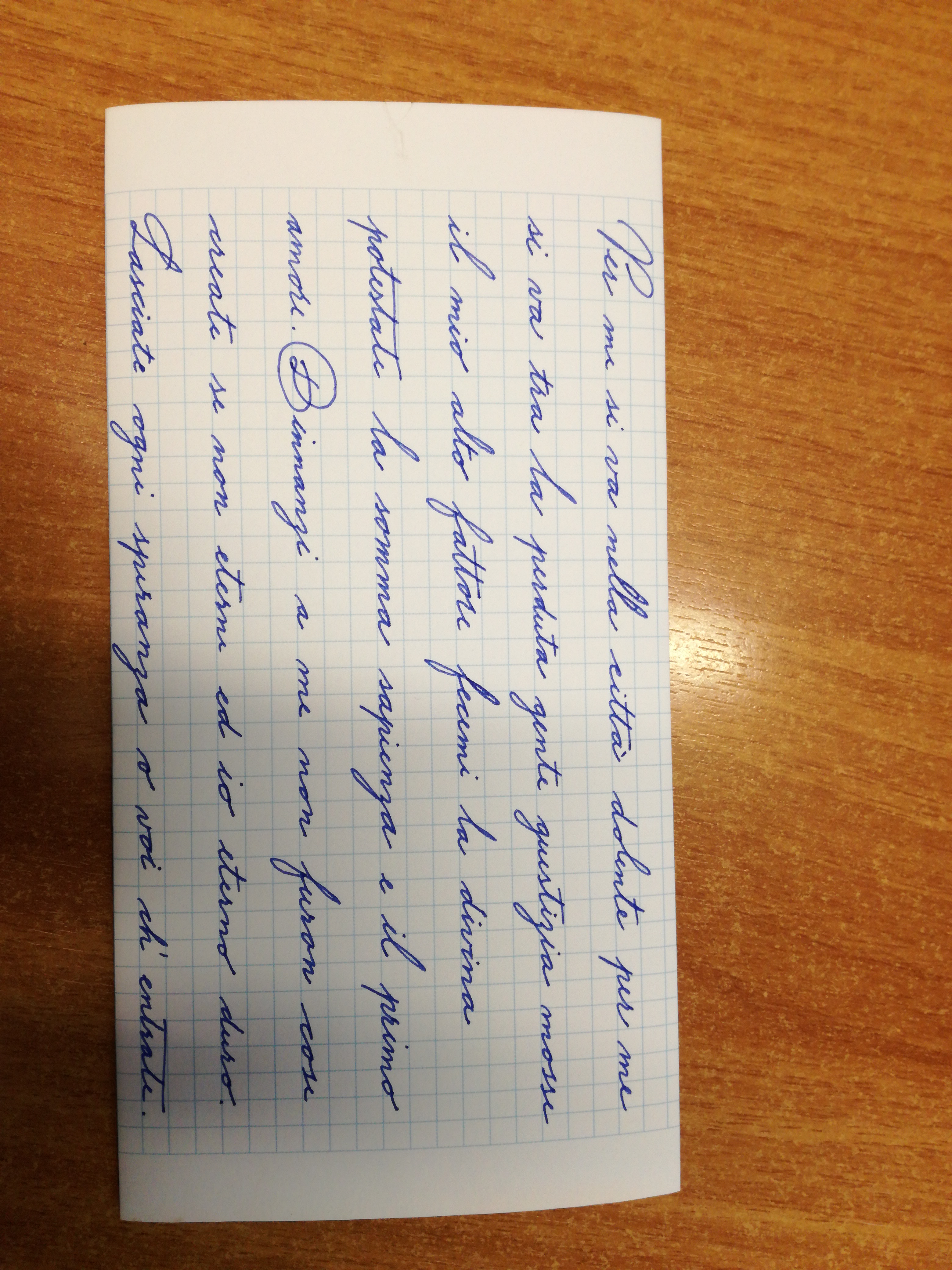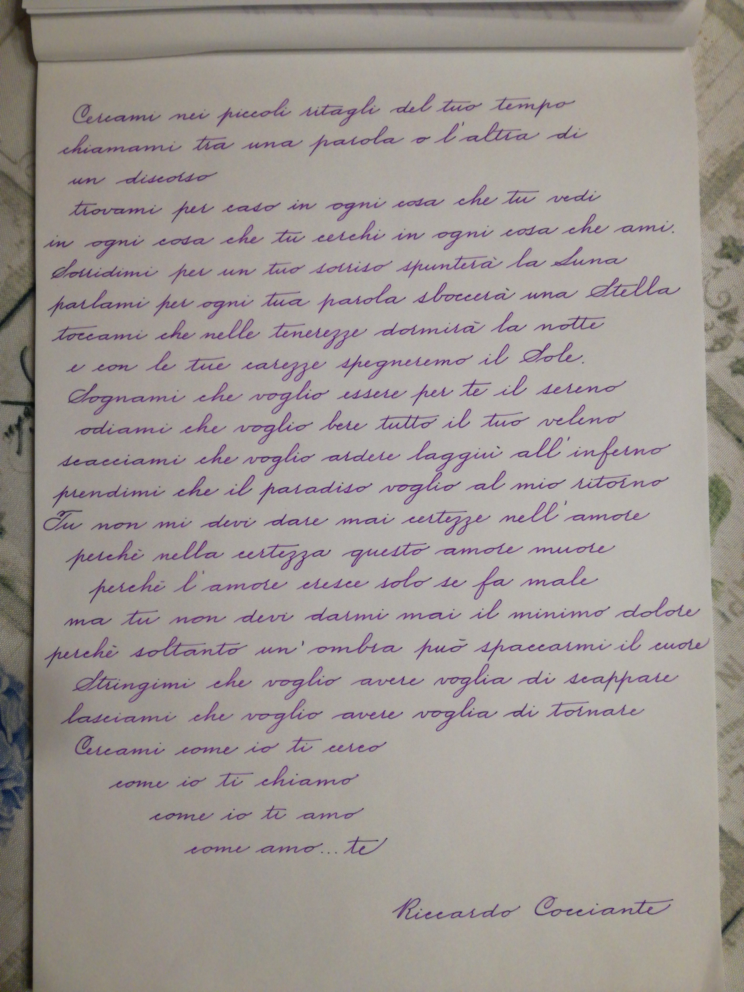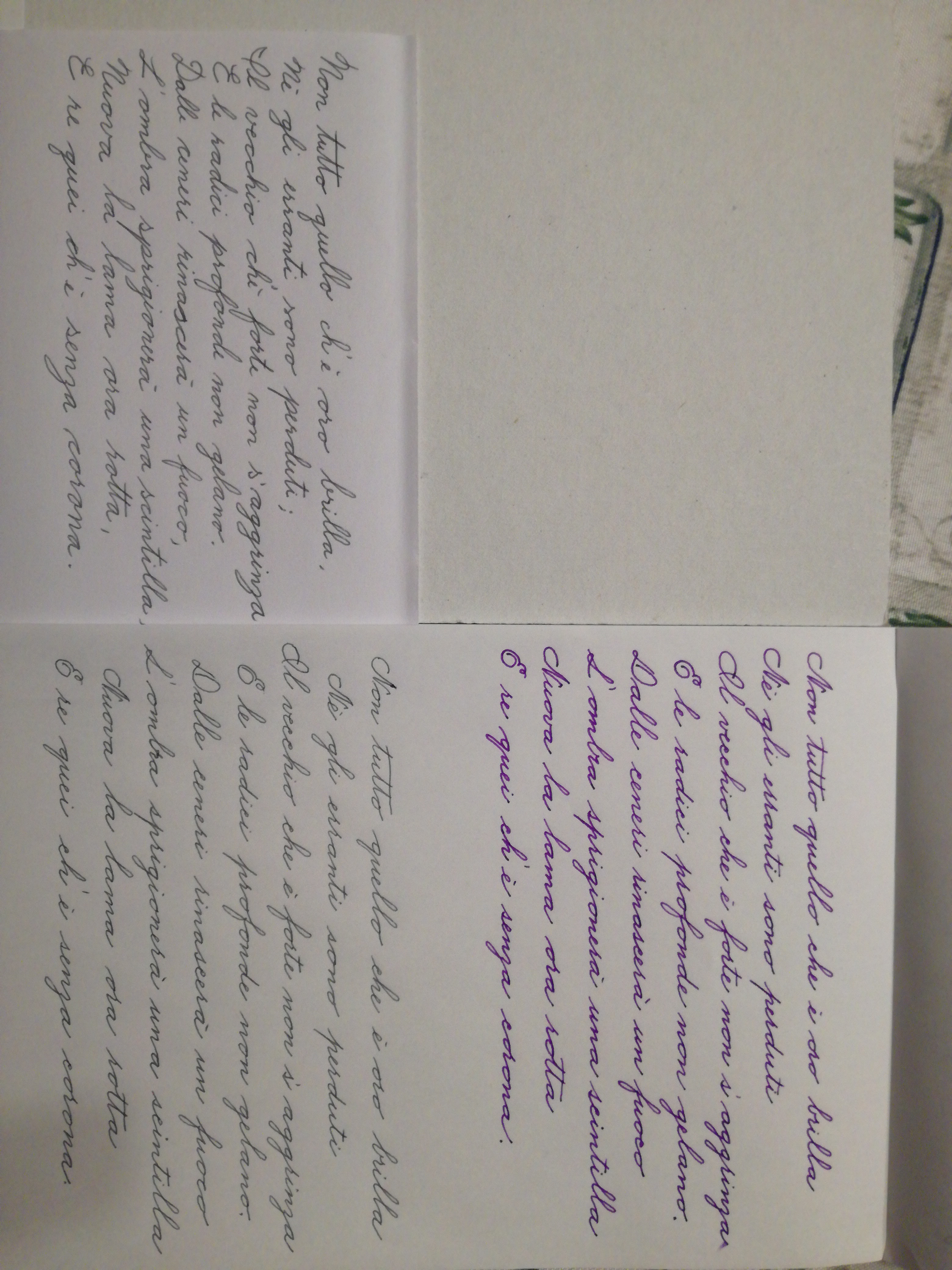 Ho scritto con una bic come la pagina originale (quella a sinistra): spero si veda la differenza! Ho anche riscritto tutto di nuovo con la mia Lamy