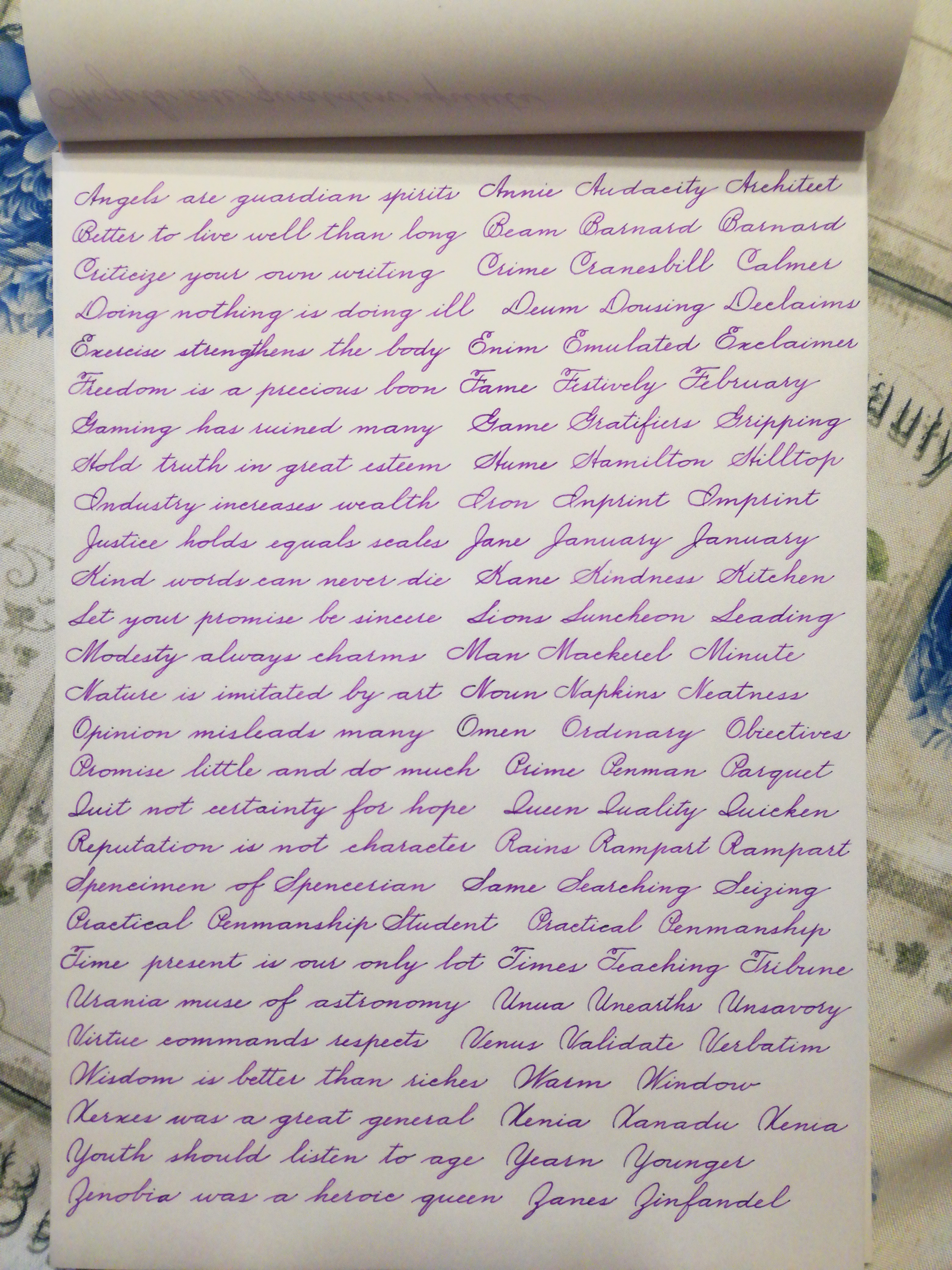 Grazie. Ho trovato il libro New Spencerian Compendium che contiene un sacco di belle variazioni sulle maiuscole: mi sto imponendo di finire tutti gli esercizi del libro che seguo adesso ma nn vedo l'ora di approfondire!