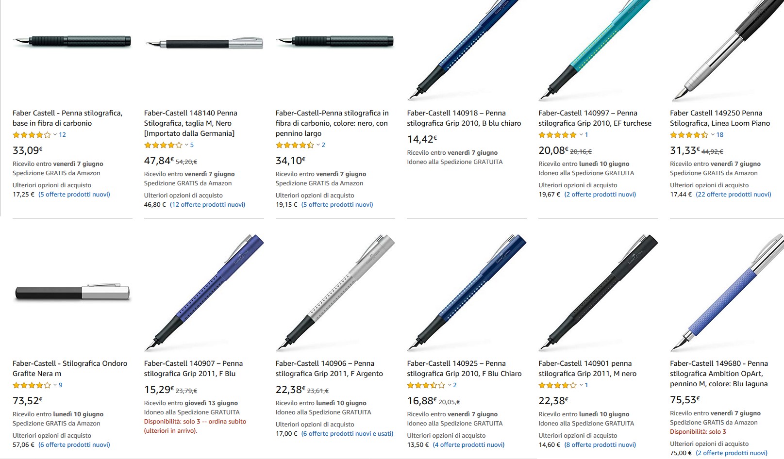 Ciao ti ringrazio, mi sa che ho deciso, riguardo al peso la mia jinhao 159 è più grossa e dovrebbe pesare di più quindi non è un problemaLamy ha scritto: ↑mercoledì 5 giugno 2019, 16:47 La Faber Castell Loom è, a mio parere, la migliore penna nella fascia di prezzo sotto i 50€. Compete bene anche con penne ben più costose. Deve piacere la livrea e bisogna desiderare penne sostanziose (è pesante), ma scrive meglio anche di varie penne da collezionisti. Il tratto è fedele alla misura indicata e l'assistenza Faber Castell è, in base alla mia esperienza, perfetta. Se abiti a Milano ti rechi in via Stromboli e in 10 minuti ti cambiano pezzo difettoso, nel caso. Altrimenti puoi spedire la penna e in meno due settimane dovresti averla di nuovo tra le mani, altro che Aurora e Pelikan. Scivola come i pattini sul ghiaccio.