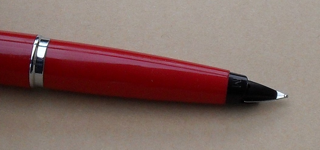 Si tratta della versione completamente in plastica ad iniezione, anche per il cappuccio, con pennino d'acciaio e con finiture cromate.