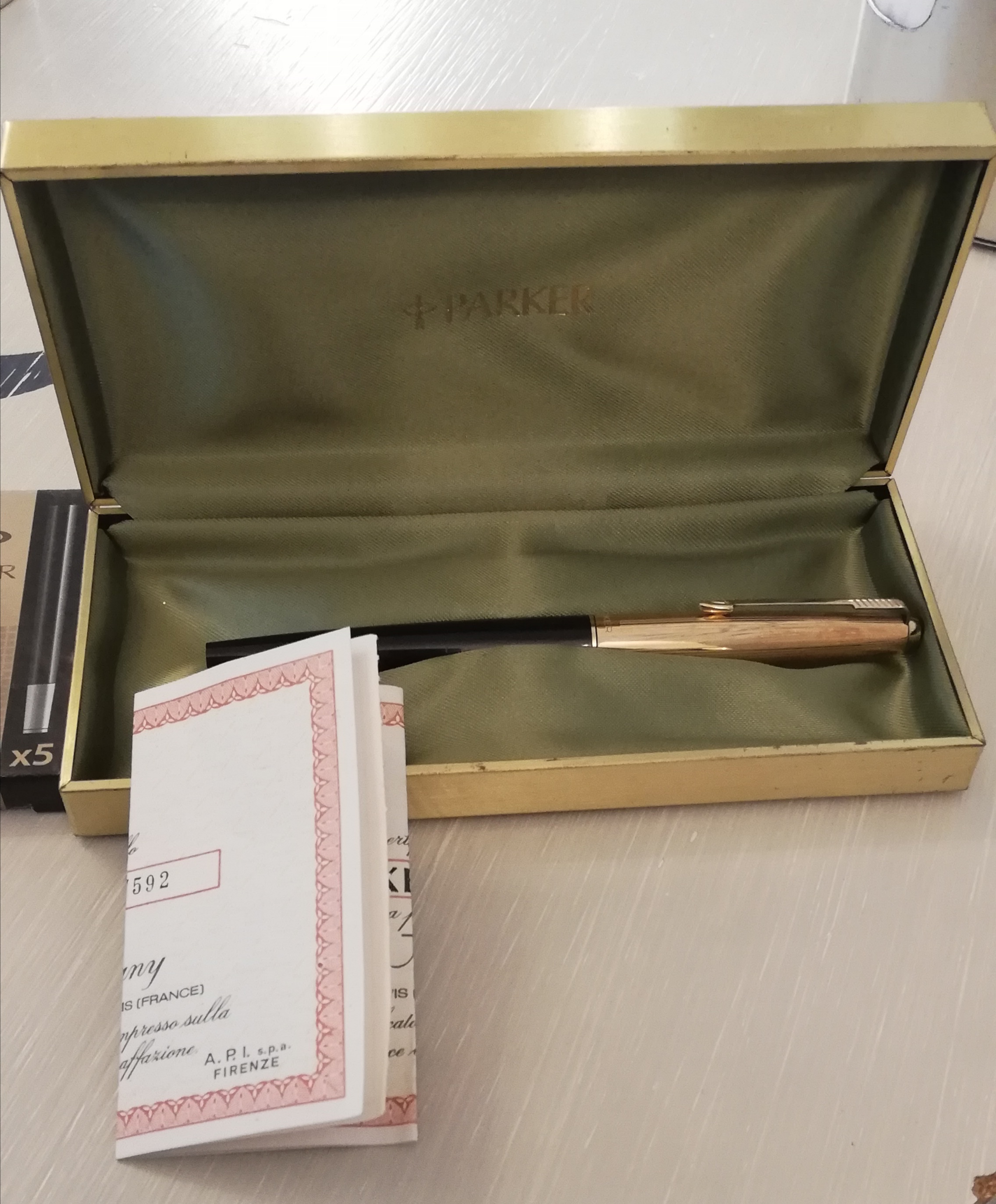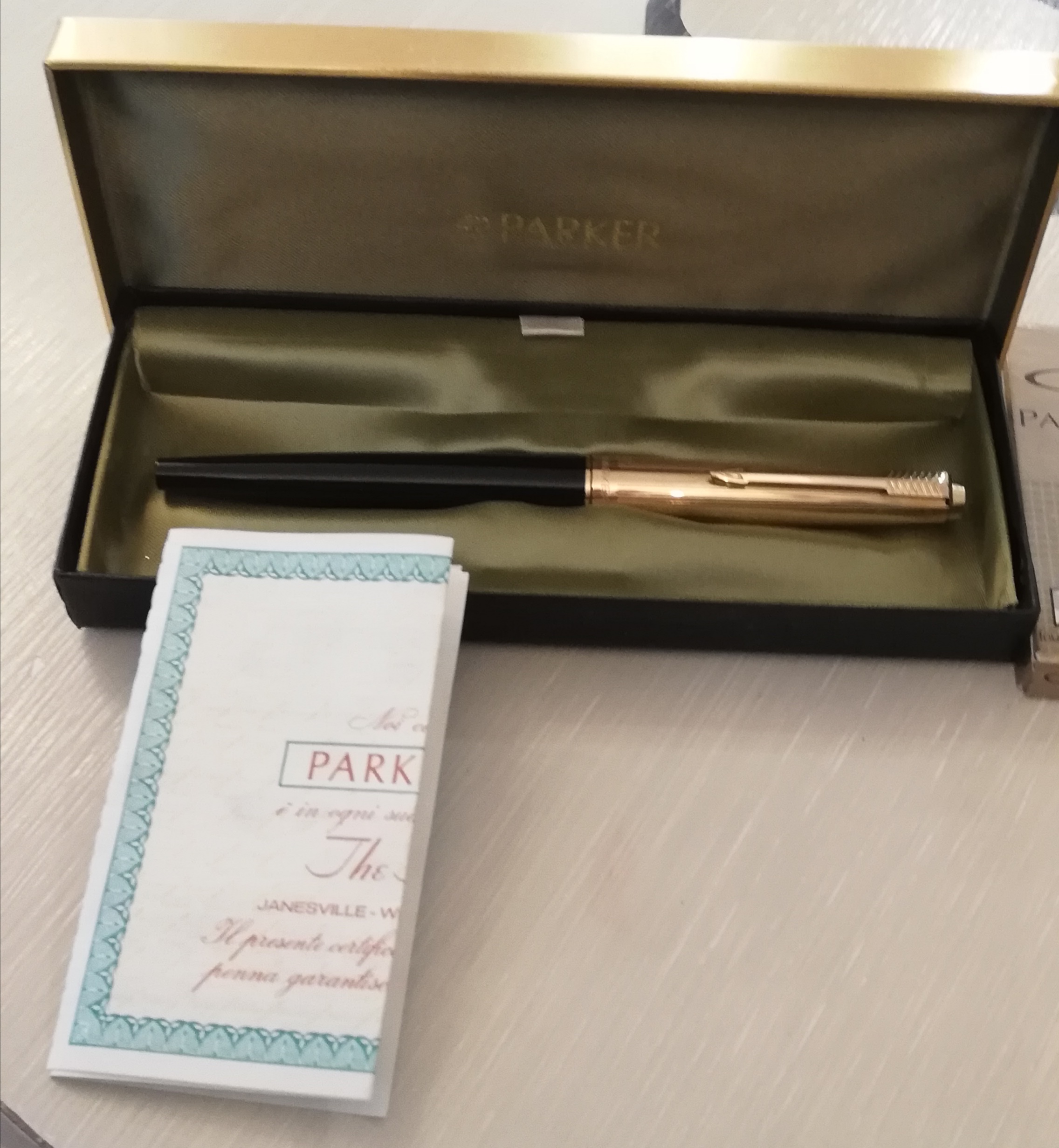 Grazie al suggerimento di gentile forumista, ho potuto acquistare due esemplari di Parker 45 Custom. Una ha pennino "F" ed intendo donarla ad una sorella che ha manifestato interesse per la "scrittura a fontana", vedendo e provando la mia Auretta di recente acquisizione che ho rigenerato grazie ai suggerimenti raccolti in Fountainpen. Evidentemente ci sono caratteristiche genetiche che ci accomunano, trasferiteci dai genitori.A Casirati ha scritto: ↑giovedì 22 dicembre 2022, 10:52Grazie a te.