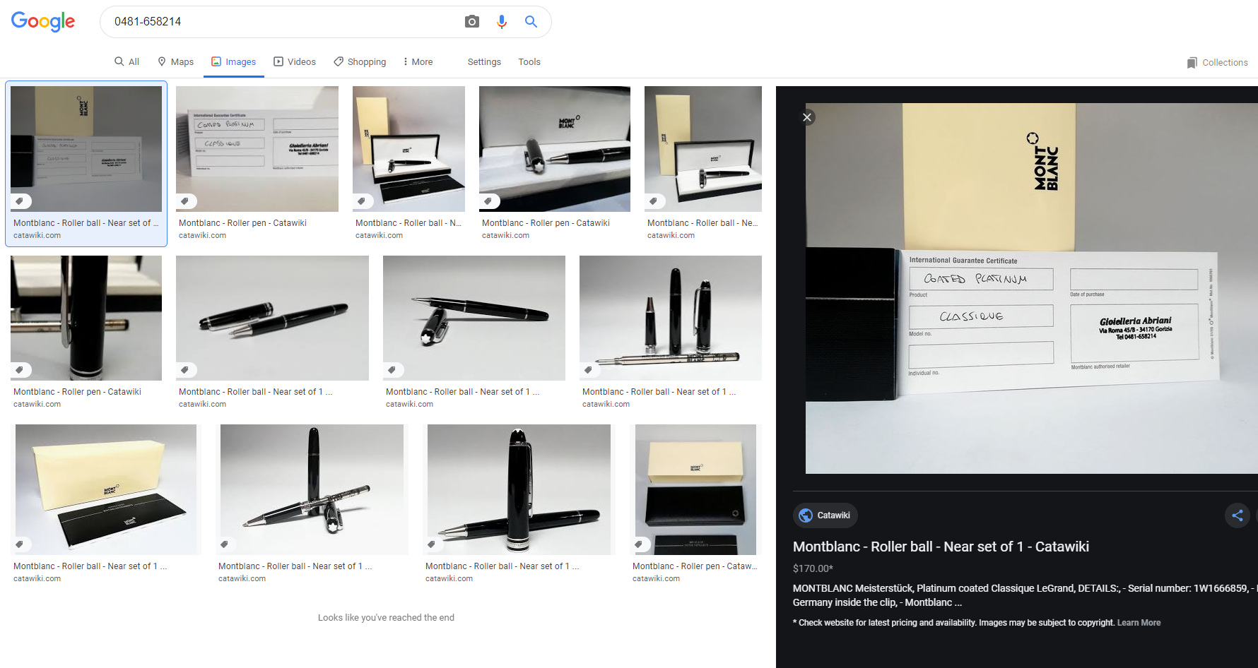 Eccolo il sito preferito dai falsificatori di Montblanc: catawiki. Quello con il controllo degli espertoni....