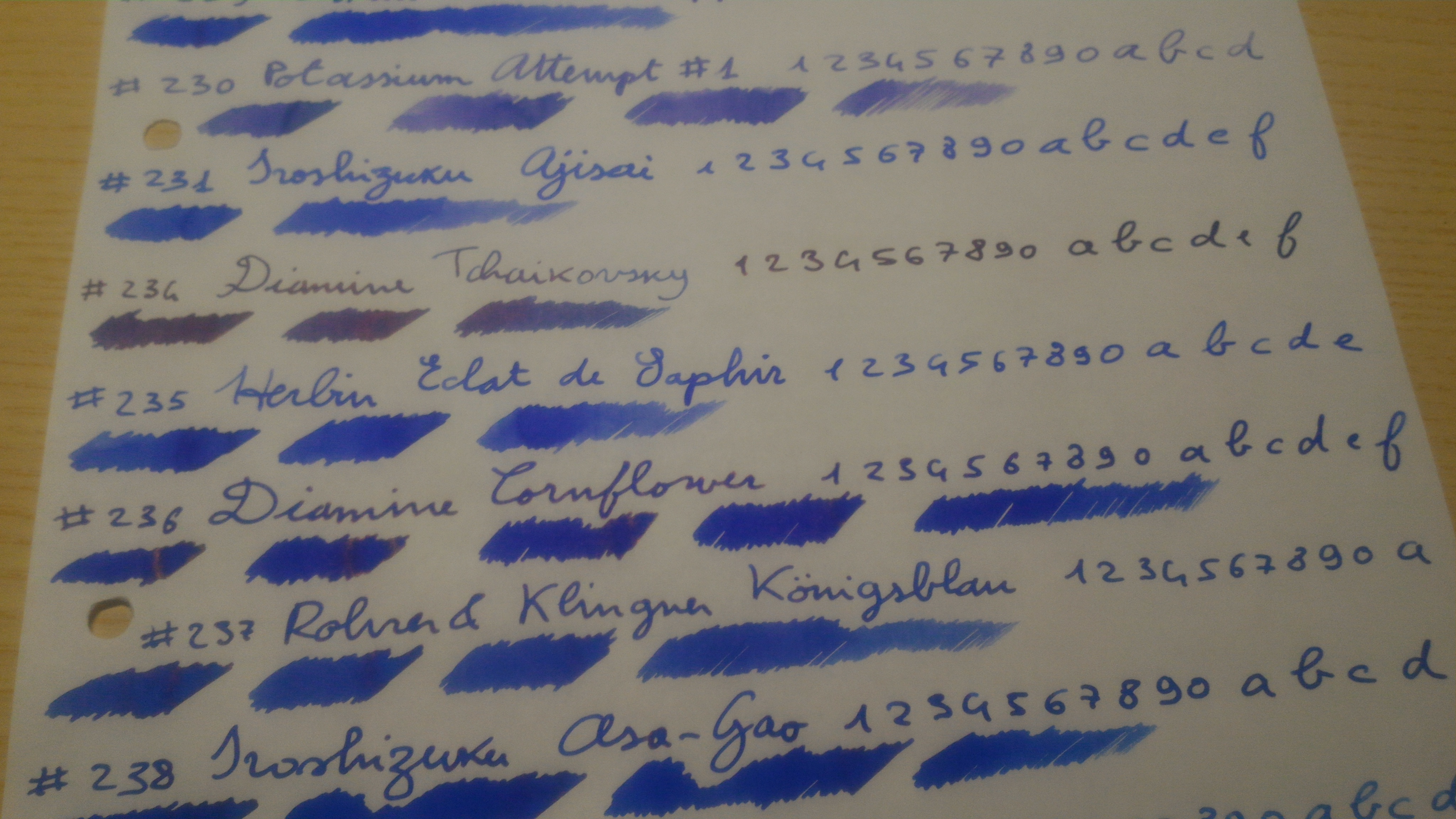 Sto catalogando gli inchiostri in mio possesso, basandomi per ora sulle recensioni del forum e su quanto trovo in rete. Cerco di fare una sintesi di tutte le informazioni, ma non è facile, ogni tanto ci sono opinioni diverse, probabilmente dovute a precezioni soggettive o alla combinazione penna-carta usata per la recensione.
