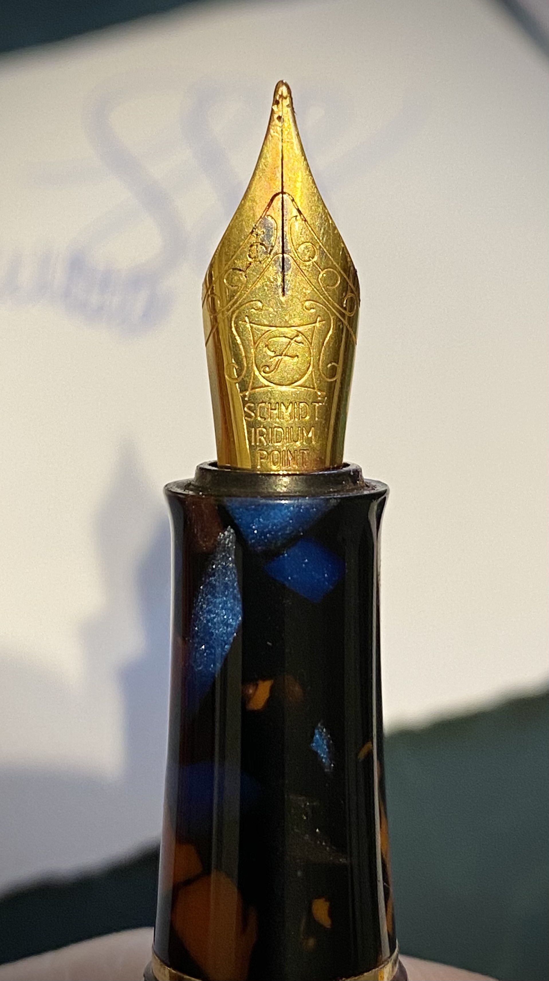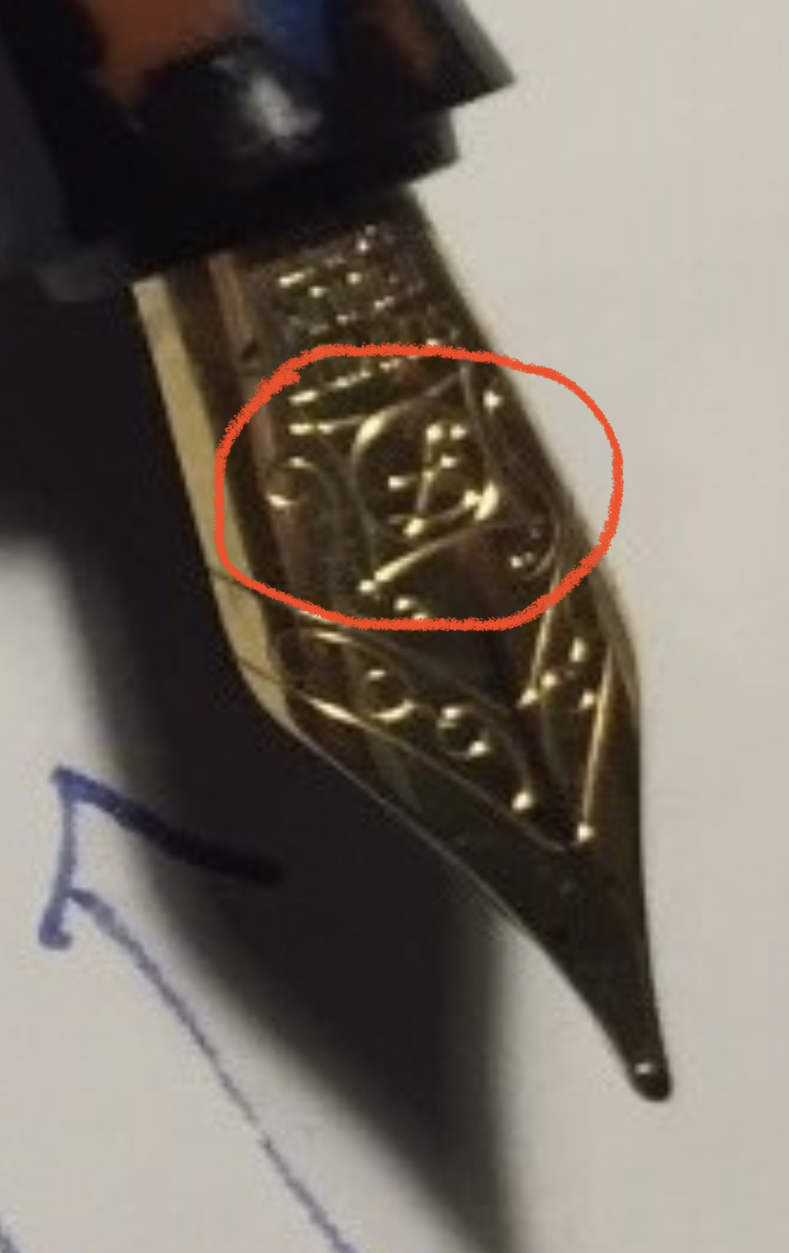 Magari mi sbaglio. La foto di Sansenri non ha la scritta a fuoco ma il disegno a me pare lui. Tra l’altro se non sbaglio i pennini Moonman hanno il foro di sfiato e questi Schmidt invece no