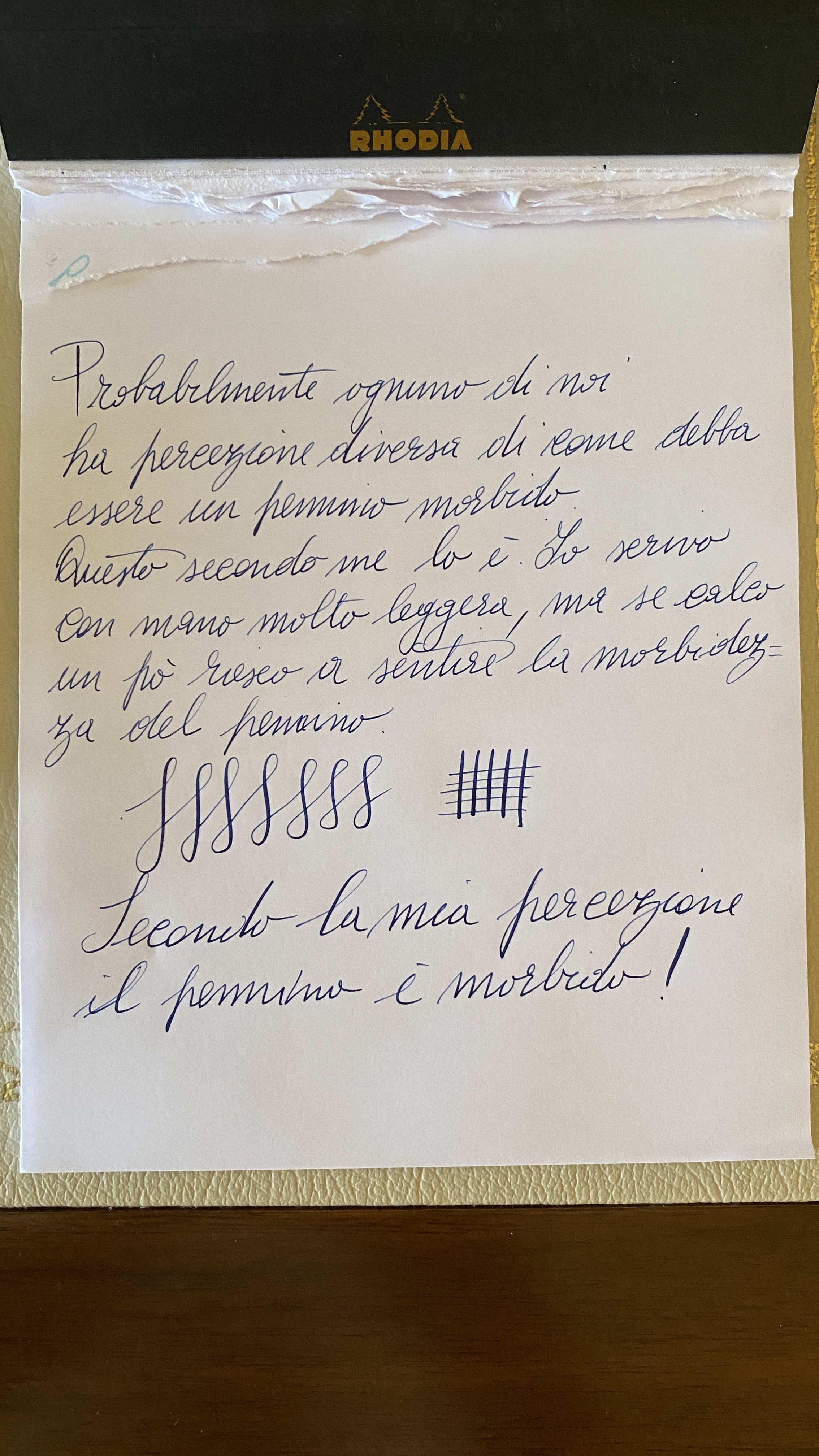 Secondo me ognuno ha la propria percezione di come debba essere un pennino morbido (nessuno credo fin ora ha parlato di flessibile)