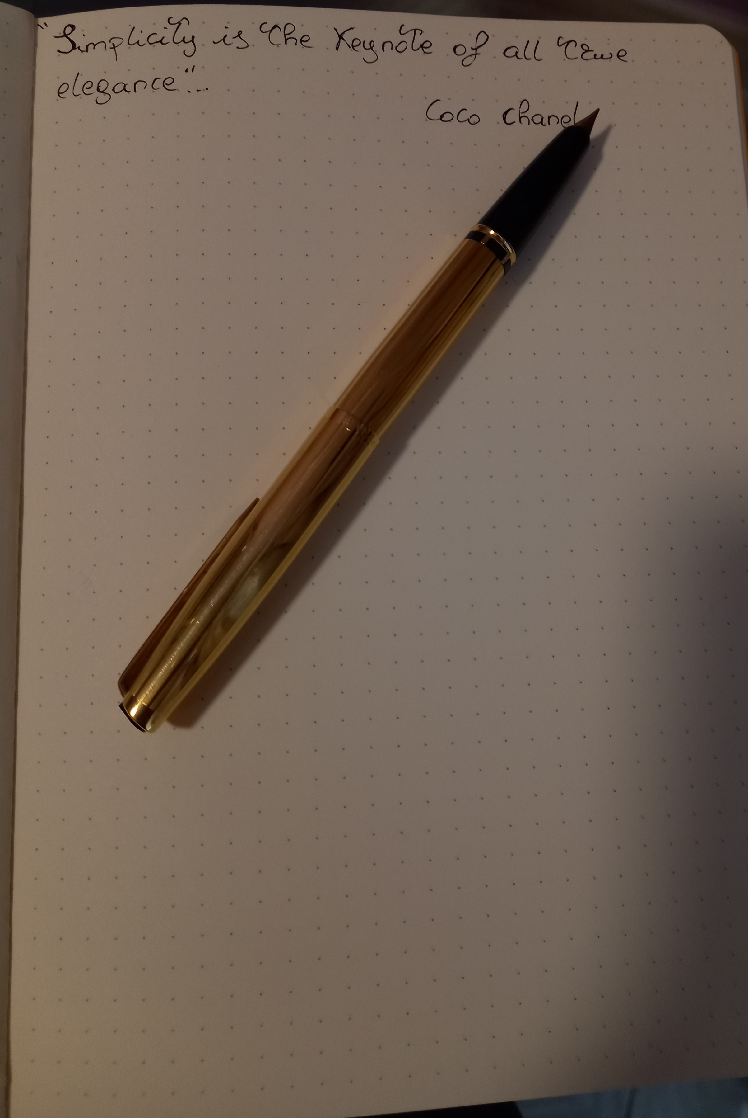 Una sensazione incredibile. Non era nuova ! Aveva almeno 20 anni a mio avviso ma era di un eleganza incredibile. O rimosso il cappuccio per guardare il pennino ma è stato come alzare la sottana a una bellissima donna ! Wow che eleganza