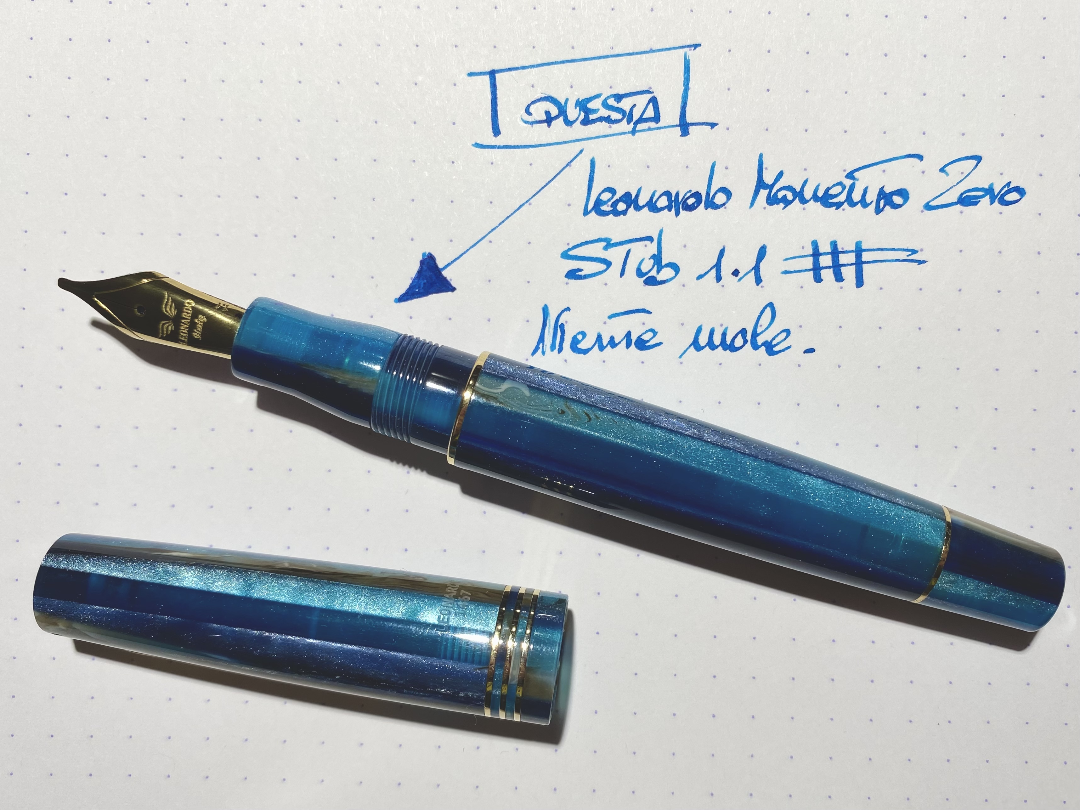 Appena estratta dall’ astuccio, caricata con Robert Oster Blue Sea. Bellissimo e ricco di shading.