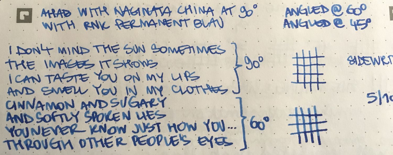 non "sara' come dico io", E' come dico io: 1) variazioni di tratto al variare dell'angolo di beccheggio, 2) variazioni tra linee orizzontali e verticali (impugno di lato, non da sotto, per questo sono larghe le verticali). gli spigoli sono arrotondati come su uno "stub", quindi le variazioni sono piu' limitate, ma si vedono bene sulle A. c'e' DOPPIA VARIAZIONE, non solo con angolo di beccheggio (come farebbe uno zoom).Koten90 ha scritto: ↑sabato 7 gennaio 2023, 17:42Sarà anche come dici tu, ma a me questo non sembra un Architect. Il Naginata, in effetti è quello che varia con l’inclinazione (tipo il PenBBS #4merloplano ha scritto: ↑sabato 7 gennaio 2023, 12:57 40 euro?? ma allora mettete il culo nelle pedate! ho fornito stringa (ribadita poi da sansenri) per acquistare il prodotto dalla cina