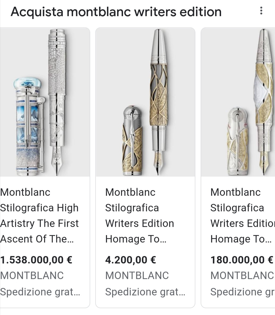 E meno male che la spedizione delle Montblanc proposte da Esme è gratuita, a quelle cifre è il minimo. Anche se online non spenderei mai quei soldi, in negozio voglio andare 😊