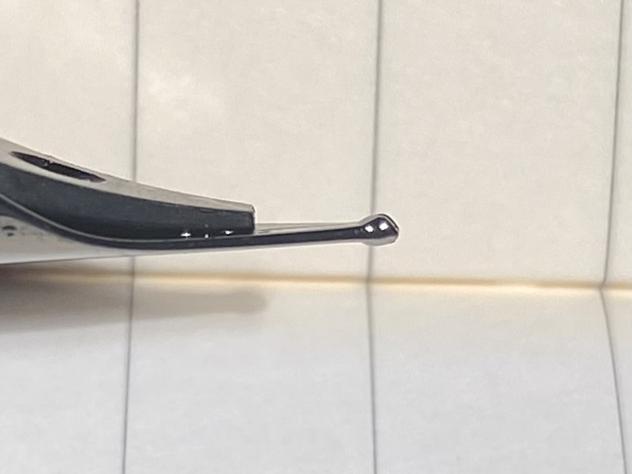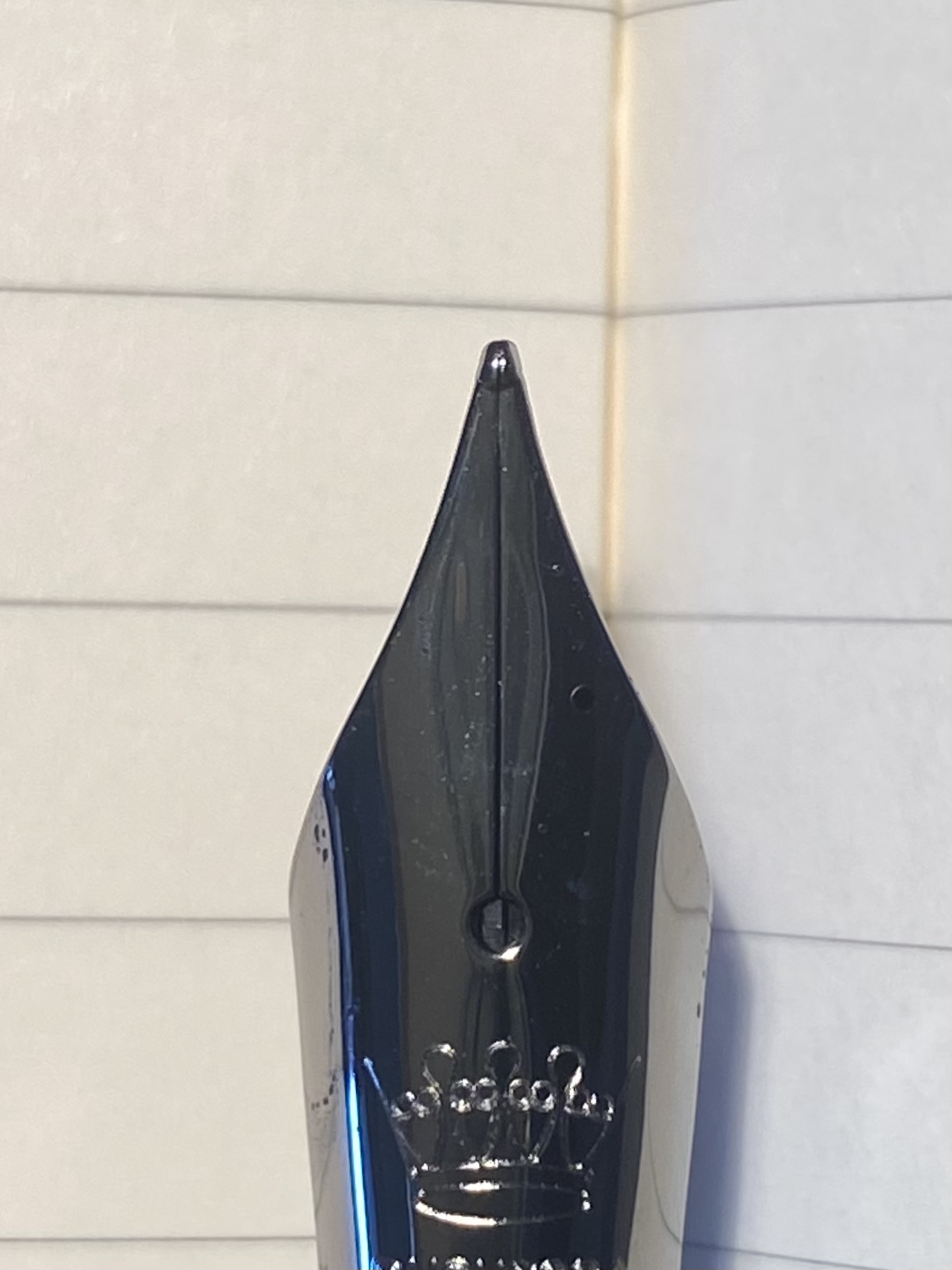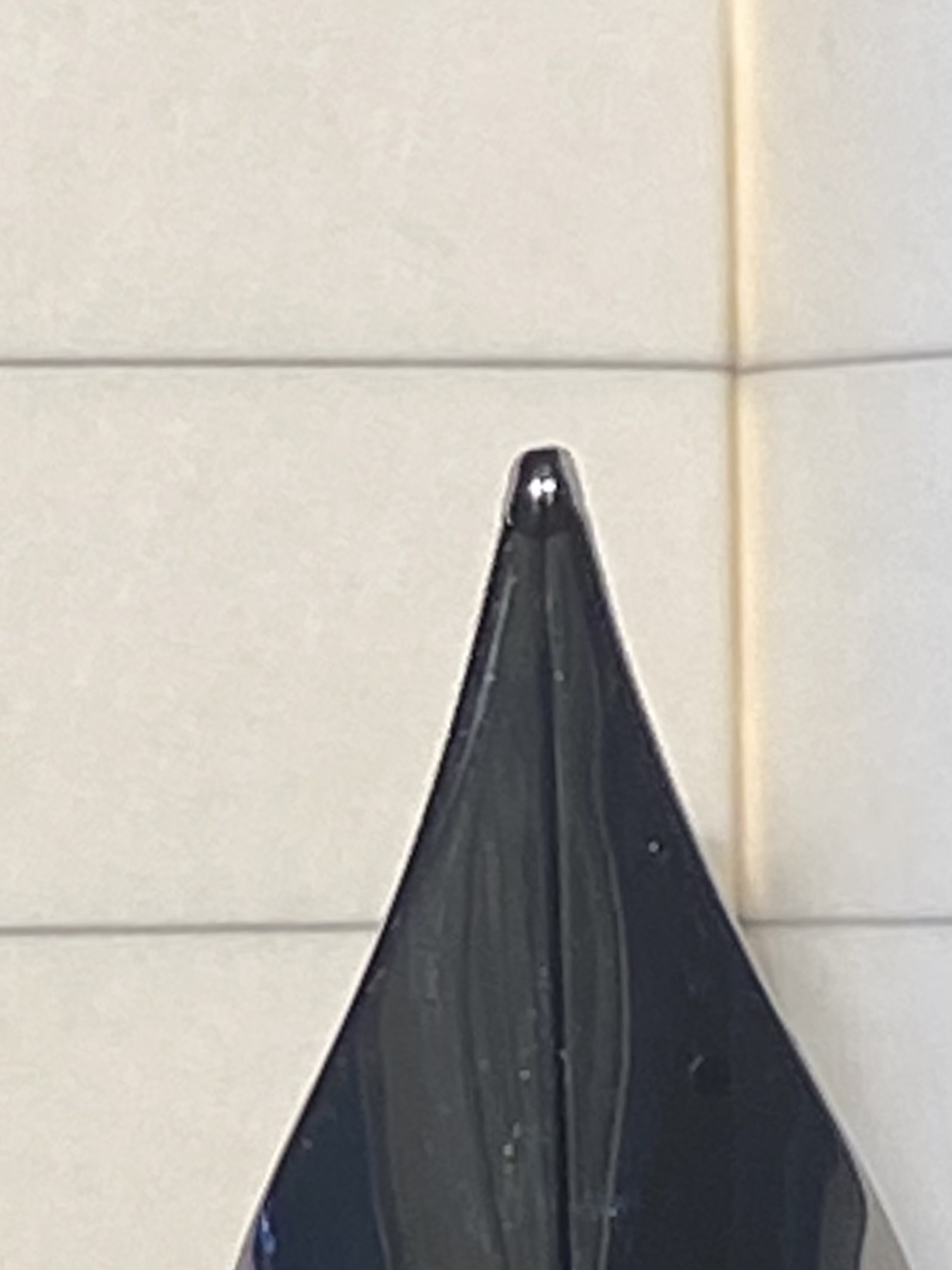Sì vede dalla foto che il pennino non ha un taglio dritto, ma sbieco e questo dà problemi di salto di tratto