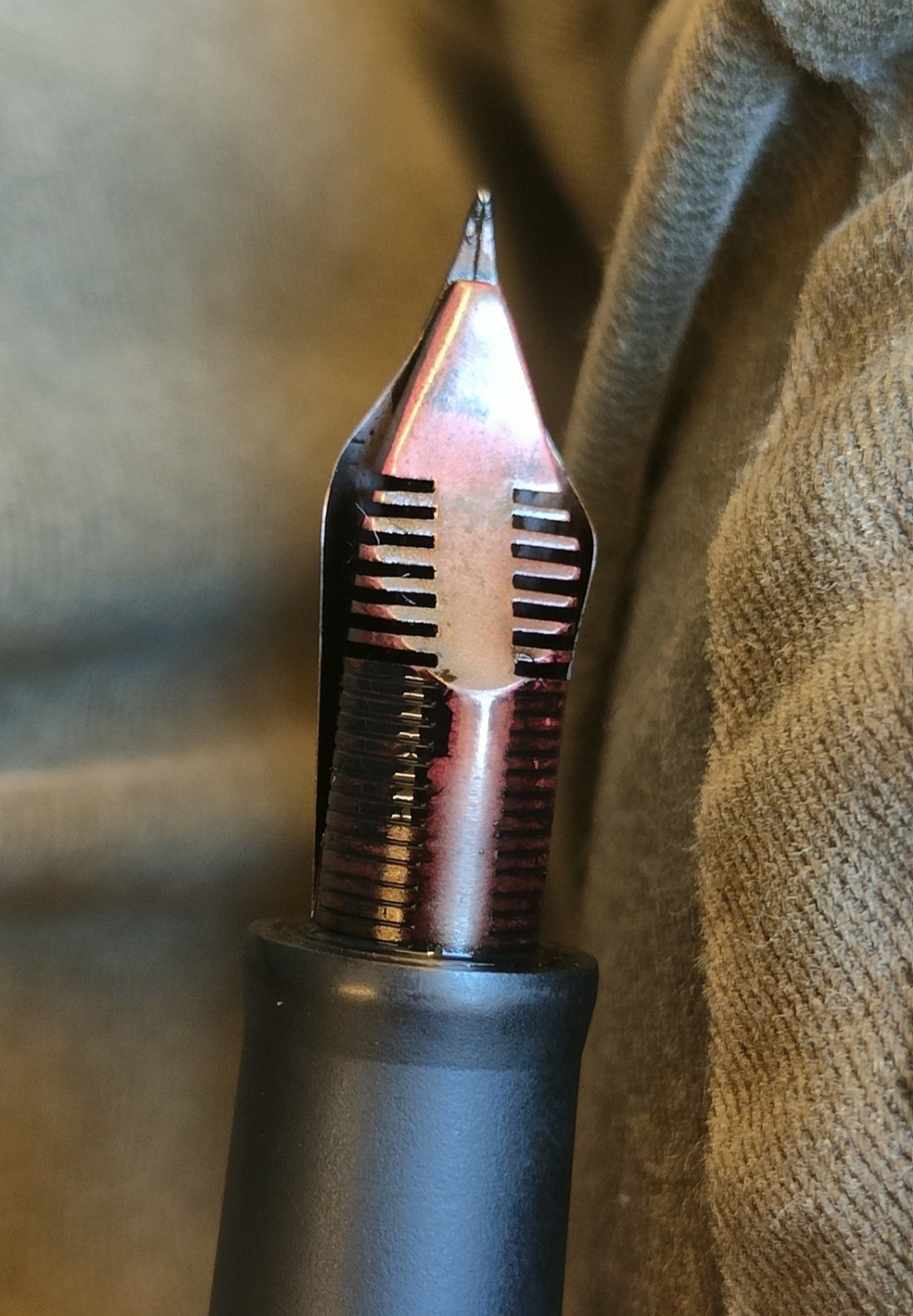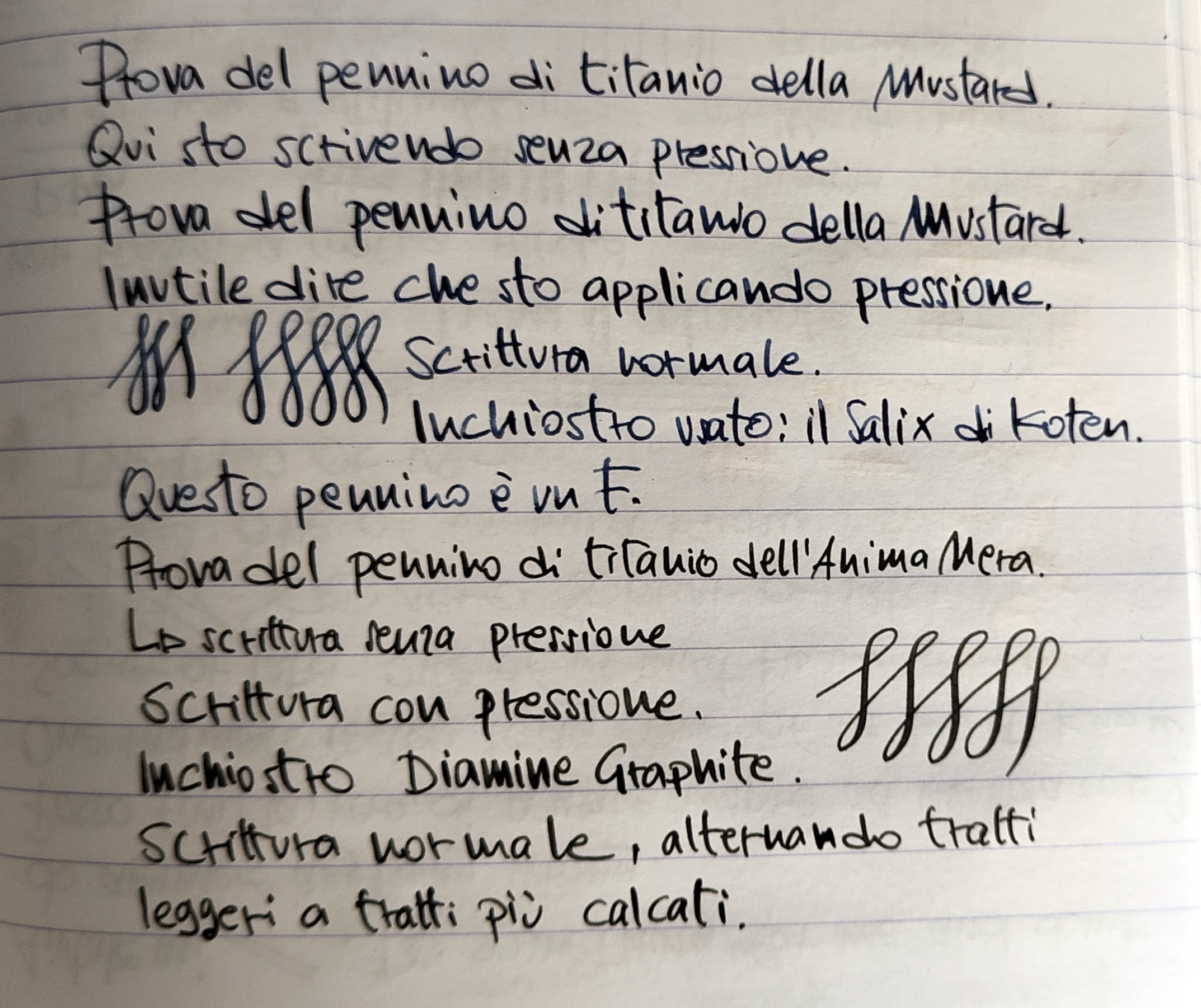 Hanno ottenuto un pennino completamente diverso dallo standard (che nel frattempo avevo distrutto), morbidissimo e con uno snap back ottimo. Il pennino di titanio che ho sulla Mustard ad esempio scrive da un anno, se ho voglia applico pressione . Guardando l'iridio con la lente, è perfetto, non ha più l' effetto memoria della prima versione.