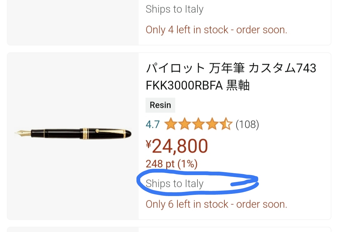 Si la penna è disponibile per essere spedita in Italia, cmq c'è qualche problema col pagamento non c'è altro. Domani provo a chattare con Amazon giappone vediamo se riesco a risolvere.