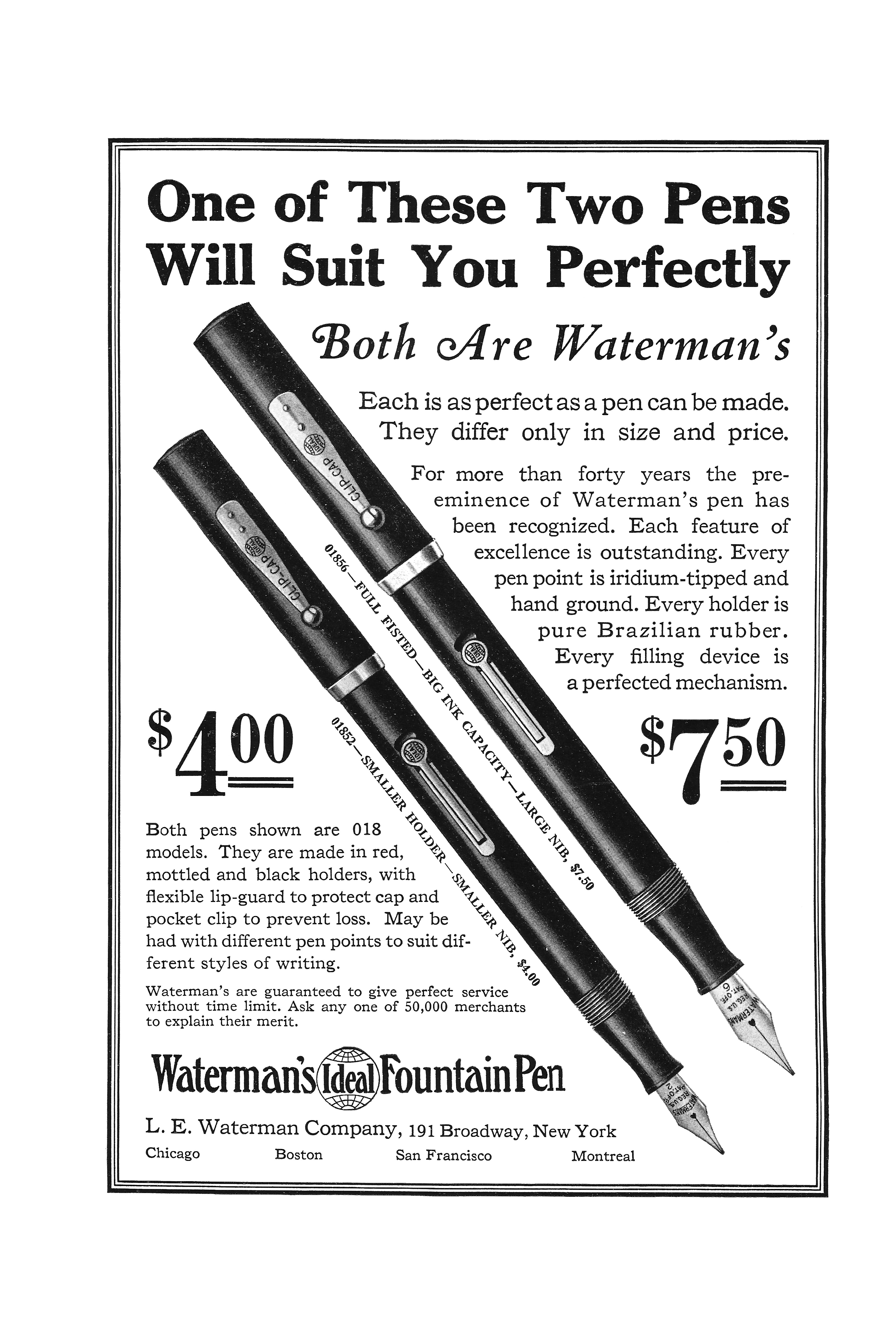 Nel messaggio sul retro si legge una citazione dal celebre monologo di Amleto: giungere a possedere finalmente una stilografica Waterman’s era da considerare