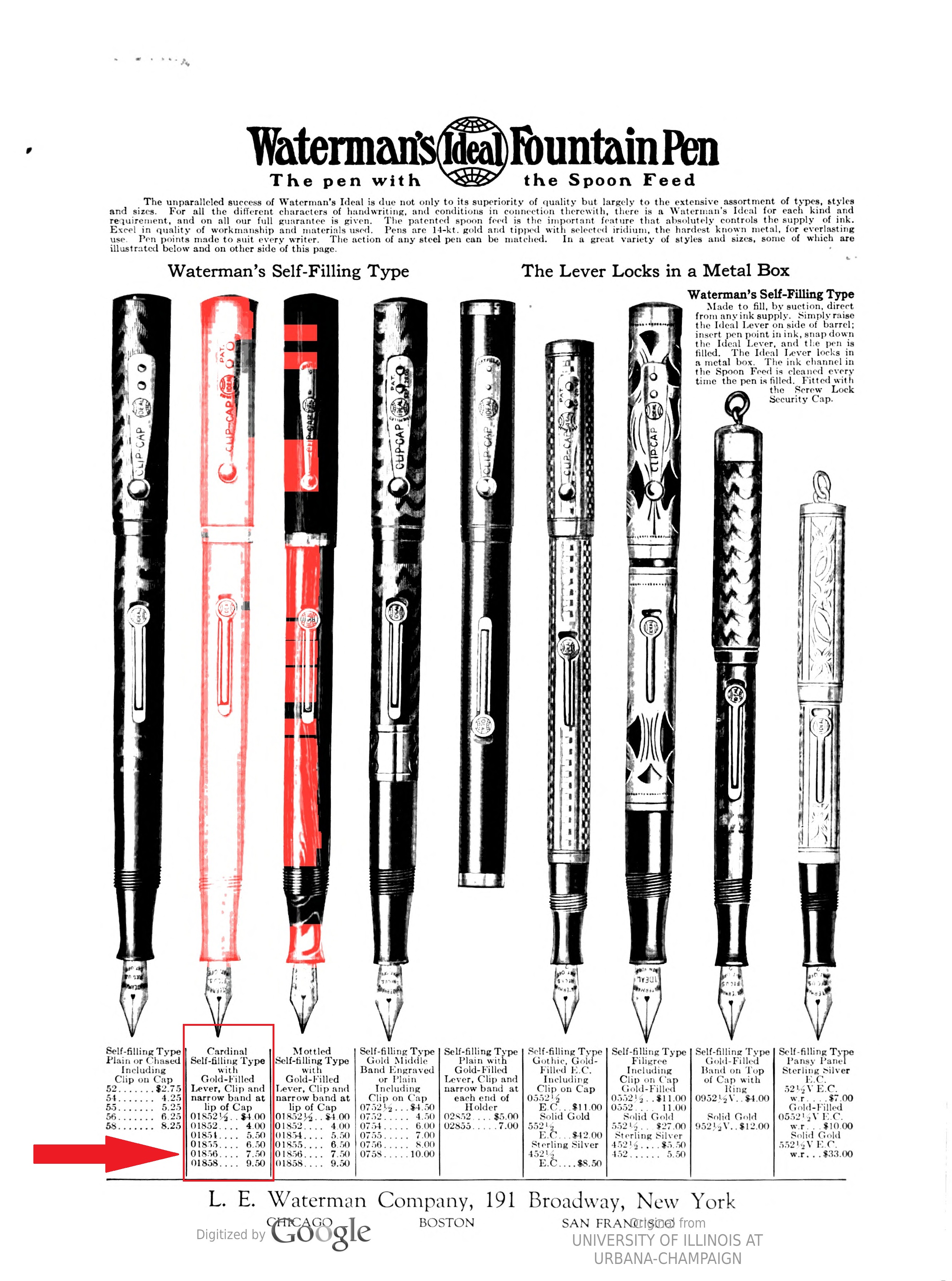WATERMAN'S - N° 52 Mottled, Black chased and Cardinal. Circa 1925. By L.G. SLOAN, Ltd. (BACK)