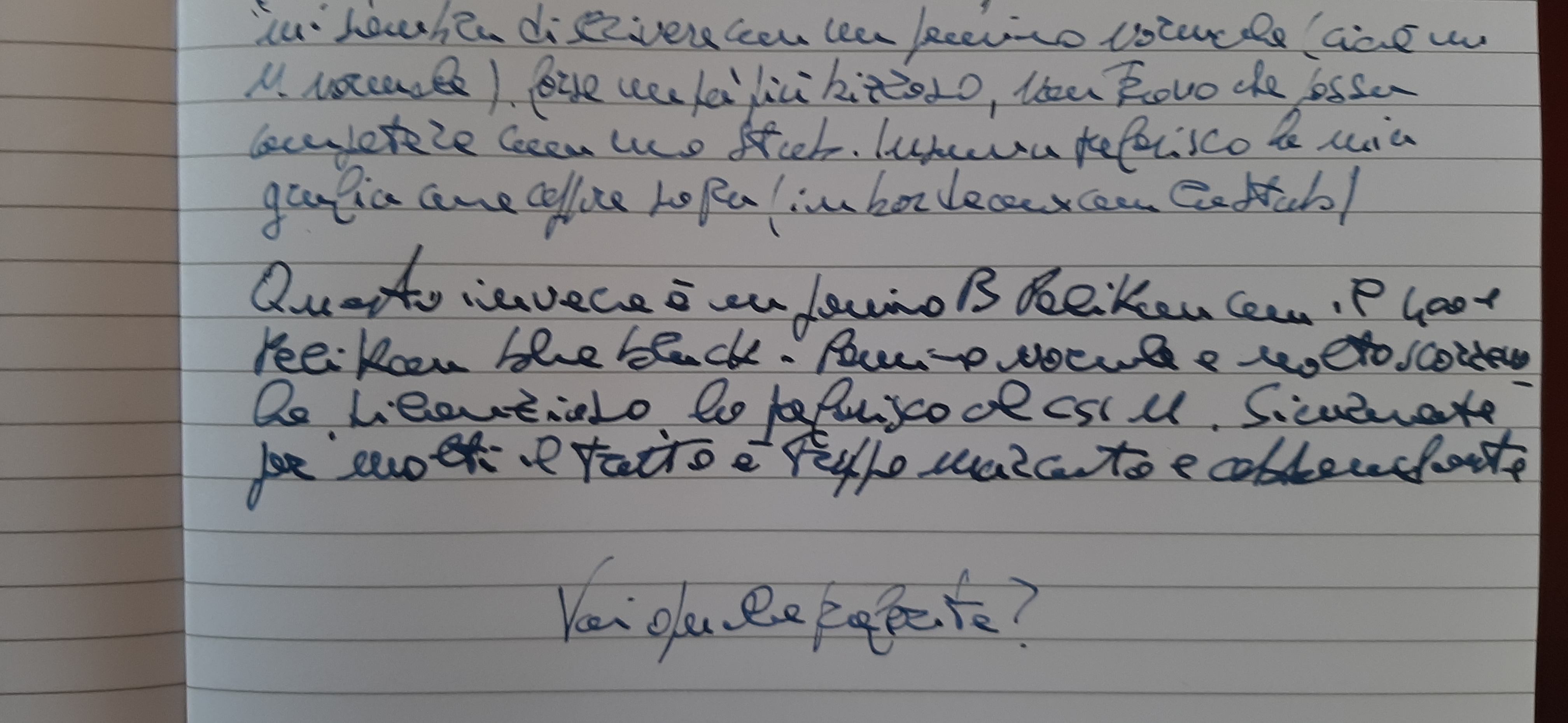 Dietro vostro consiglio ho cambiato inchiostro, caricata con Waterman blue, effettivamente mi sembra piu' scorrevole ...altri inchiostri da suggerire ? Grazie e vi terro' aggiornati