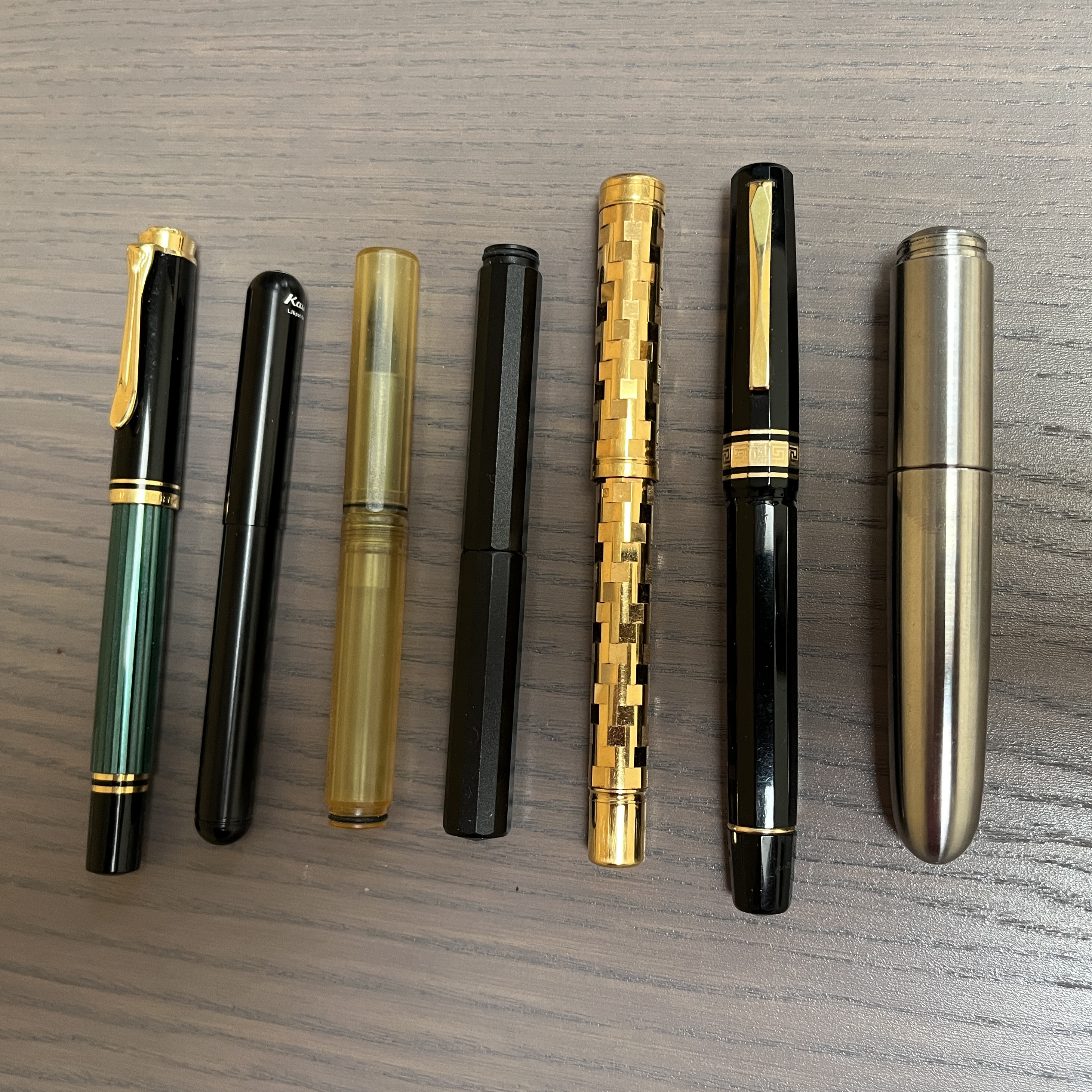 Pelikan M300 - LILIPUT - ENSSO Ultem e Aluminum- Waterman Lady Patricia 90's, Omas Dama, proiettile calibro NATO in titanio (di cui adesso non ricordo il produttore)