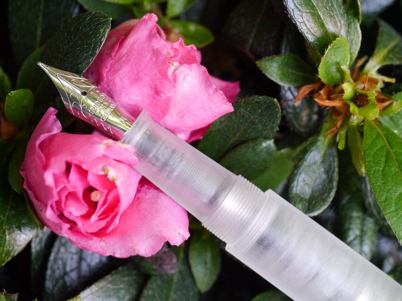 Un po' meno user friendly della Ranga, ma lascia l'intero fusto in acrilico trasparente per guardare lo sciacquio dell'inchiostro e suoi lustrini!