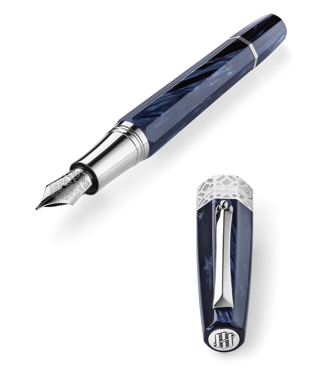 Quello di maylota é il Blu Mezzanotte. La celluloide con cui fano la Extra 1930 in produzione oggi é color Blu Mediterraneo, che é ha un tono decisamente più chiaro. E' bellissima, ma più leggera. Io ho una Montegrappa Emblema in questo colore Mediterraneo (dovei prima o poi fare una rassegna di questo splendido modello), e per qualche ragione trovo che sia piú bella sulla Emblema che sulla Extra 1930.