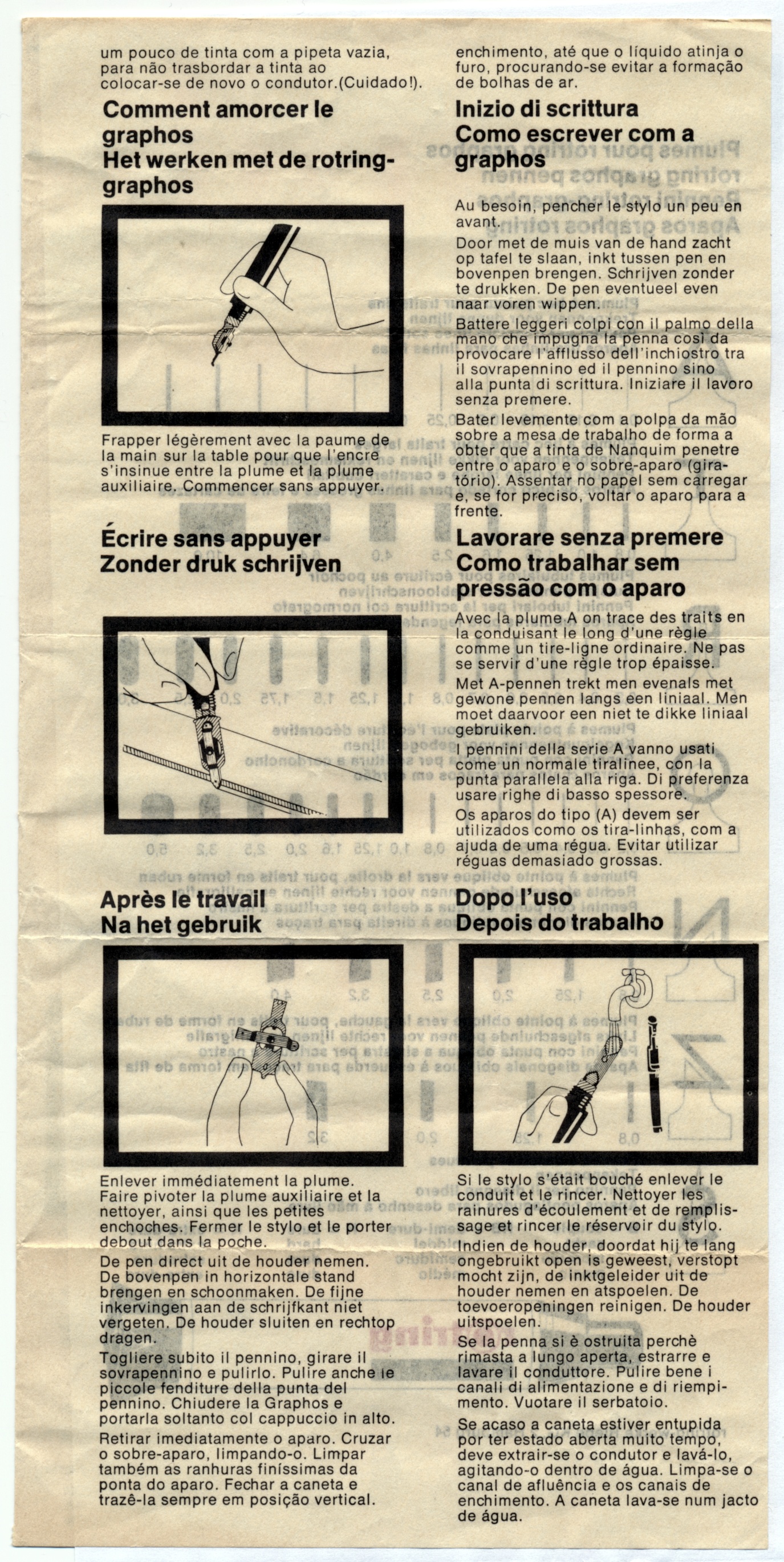 Per la mia esperienza, non ci si poteva affidare a prove estemporanee: in campo tecnico professionale era proprio necessario imparare a usare per bene i rapidografi a china (delle varie misure) con tutti i vari strumenti di disegno (righe, squadrette, normografo, curviline, circoligrafi, compasso con adattatore per rapidografo, retini semitrasparenti da rifilare ecc.).