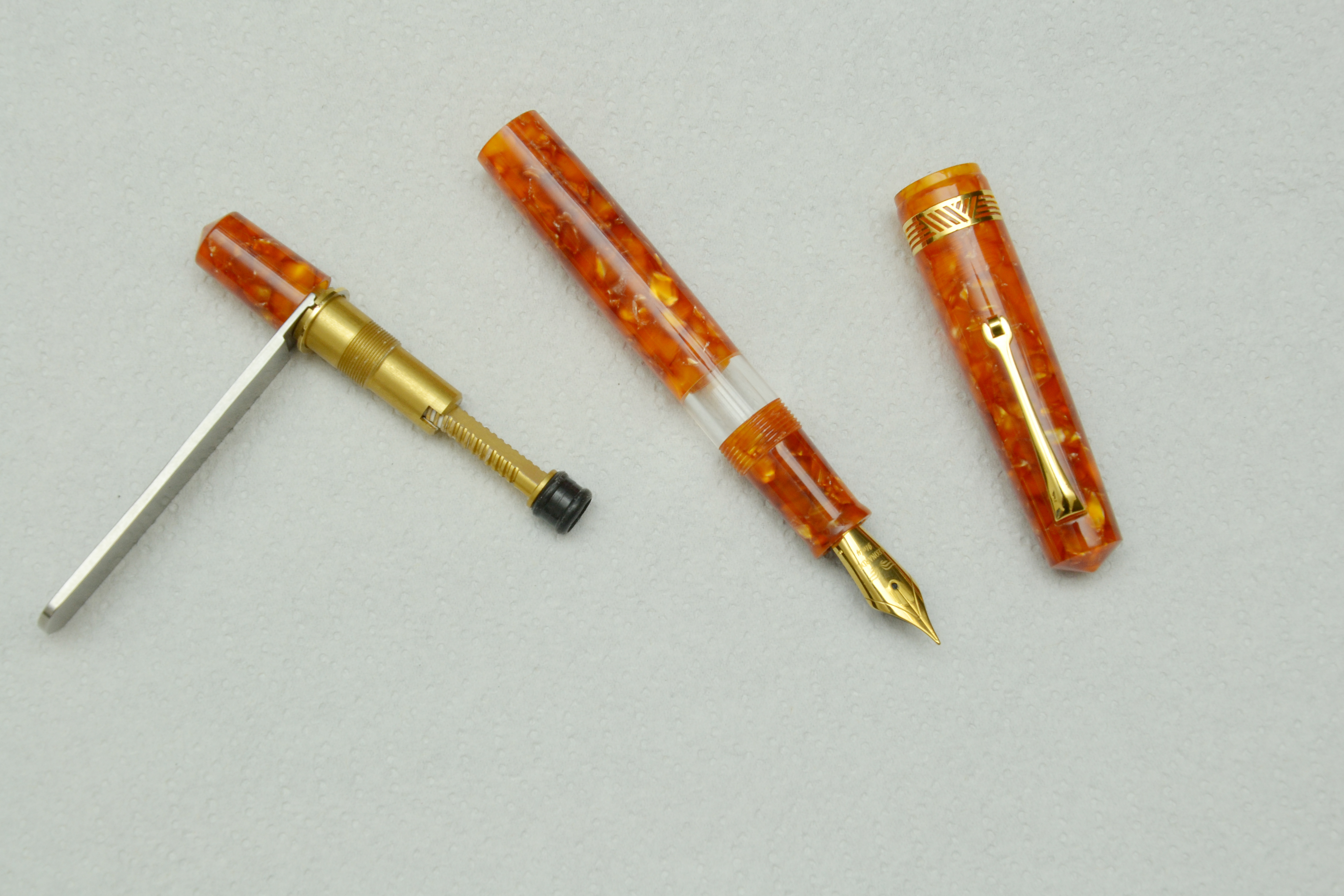 Il pistone lo danno con penne di fascia più alta delle "normali" con pennino oro 14k, a me è arrivato in dotazione con due edizioni speciali in ebanite, ed era compreso anche l'inchiostro.