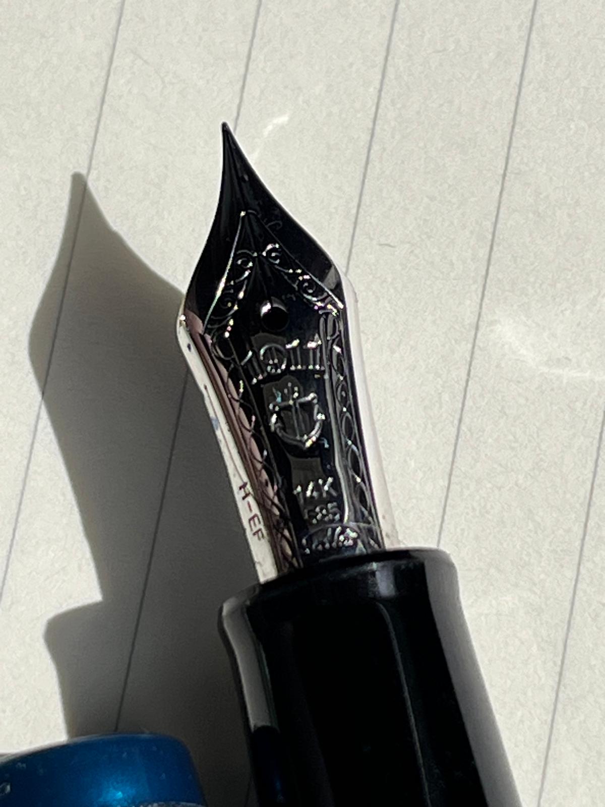 Ho solo avuto modo di notare che i Sailor 14kt sono molto più restrittivi di altri pennini. Il mio F, appunto, è più fine perfino del Platinum 02 della Preppy, che è una lama già di suo, quindi posso solo immaginare l'EF come sia. D'altra parte sono ottimizzati per scrivere giapponese, soprattutto i tagli più sottili, e il giapponese - per quanto rapido possa essere scritto - è caratterizzato da brevi tratti, si alza spesso la penna dal foglio e un pennino molto ristretto ha tutto il tempo di imbibirsi di nuovo. Con il corsivo, il tratto è continuo, serve un flusso più costante, che può voler dire anche più abbondante. Quindi non è affatto detto che la penna in sé abbia difetti, potrebbe solo esserci un'incompatibilità di base.
