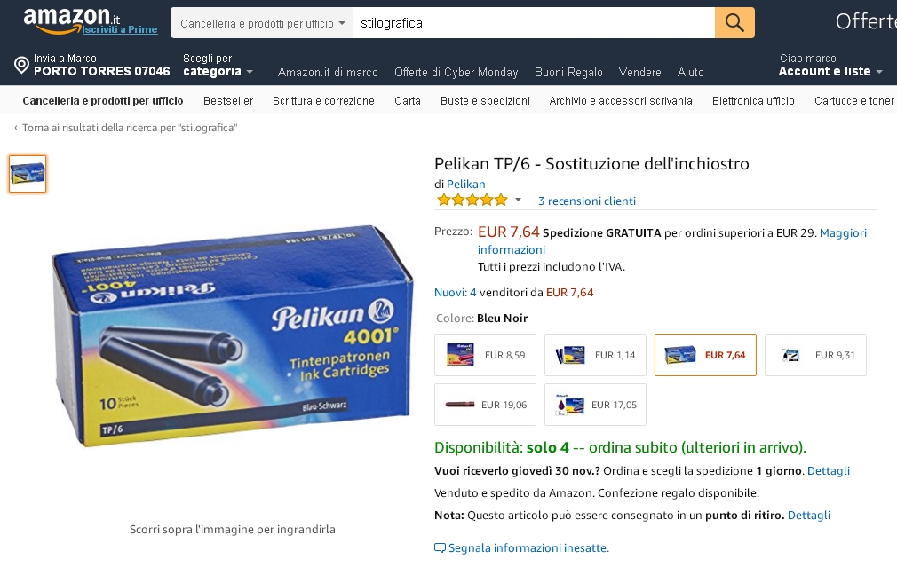 C'era scritto che arrivava nella Present Case della PelikanPhormula ha scritto: ↑lunedì 27 novembre 2017, 15:00Arrivata oggi, certo fa specie ricevere un pacchetto con dentro una serie di oggetti da grande magazzino e... una M1005.MaPe ha scritto: ↑giovedì 23 novembre 2017, 0:01 Il problema è che se non c'è la scatola Present Case, non te la mandono avvolta nel millebolle. Avevo preso la M805 Stresemann EF ad un'ottimo prezzo, era arrivata in un cartoncino dentro il cartoncino delle spedizioni di Amazon per i piccoli oggetti. La Penna era arrivata sana e salva per miracolo, considerando che la "busta" di cartone era abbastanza rovinata.