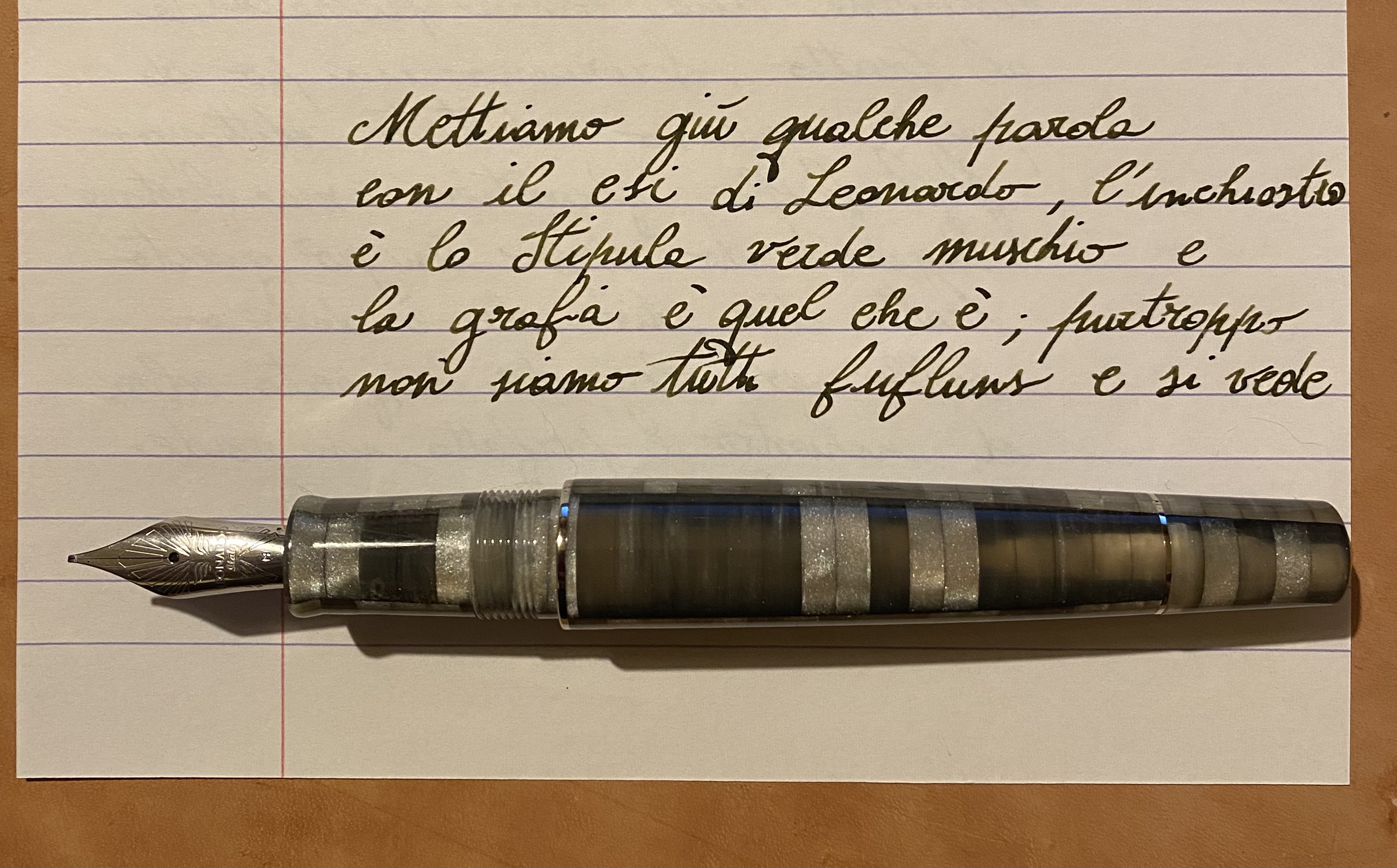 A gentile richiesta; più scrivo più mi rendo conto che, a penna, a differenza delle jap o di penne con pennino standard, questa penna pretende di essere conosciuta bene. La grafia è questa, accontentatevi