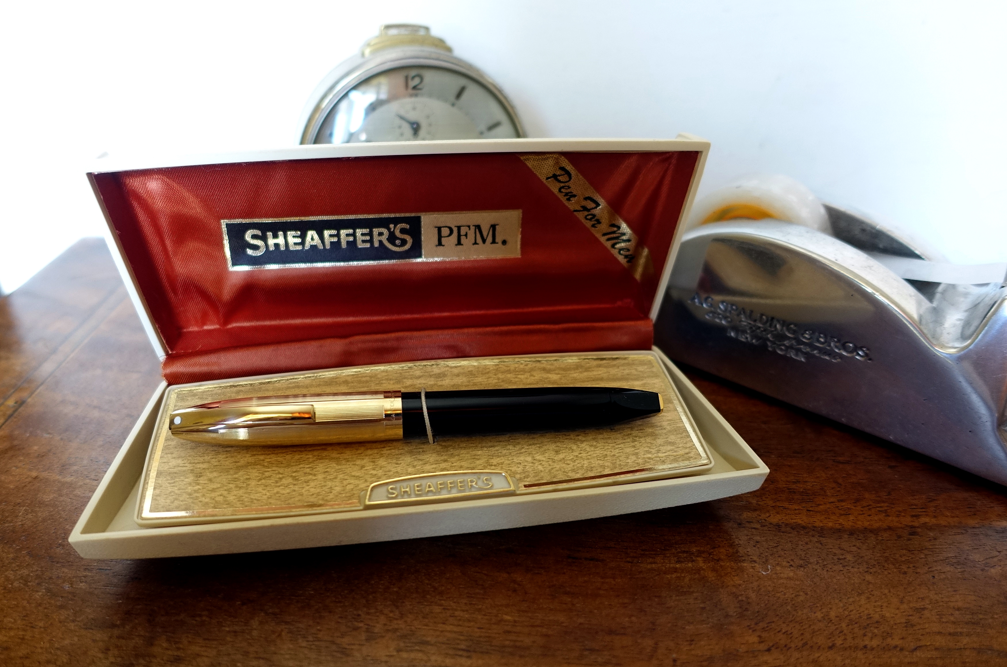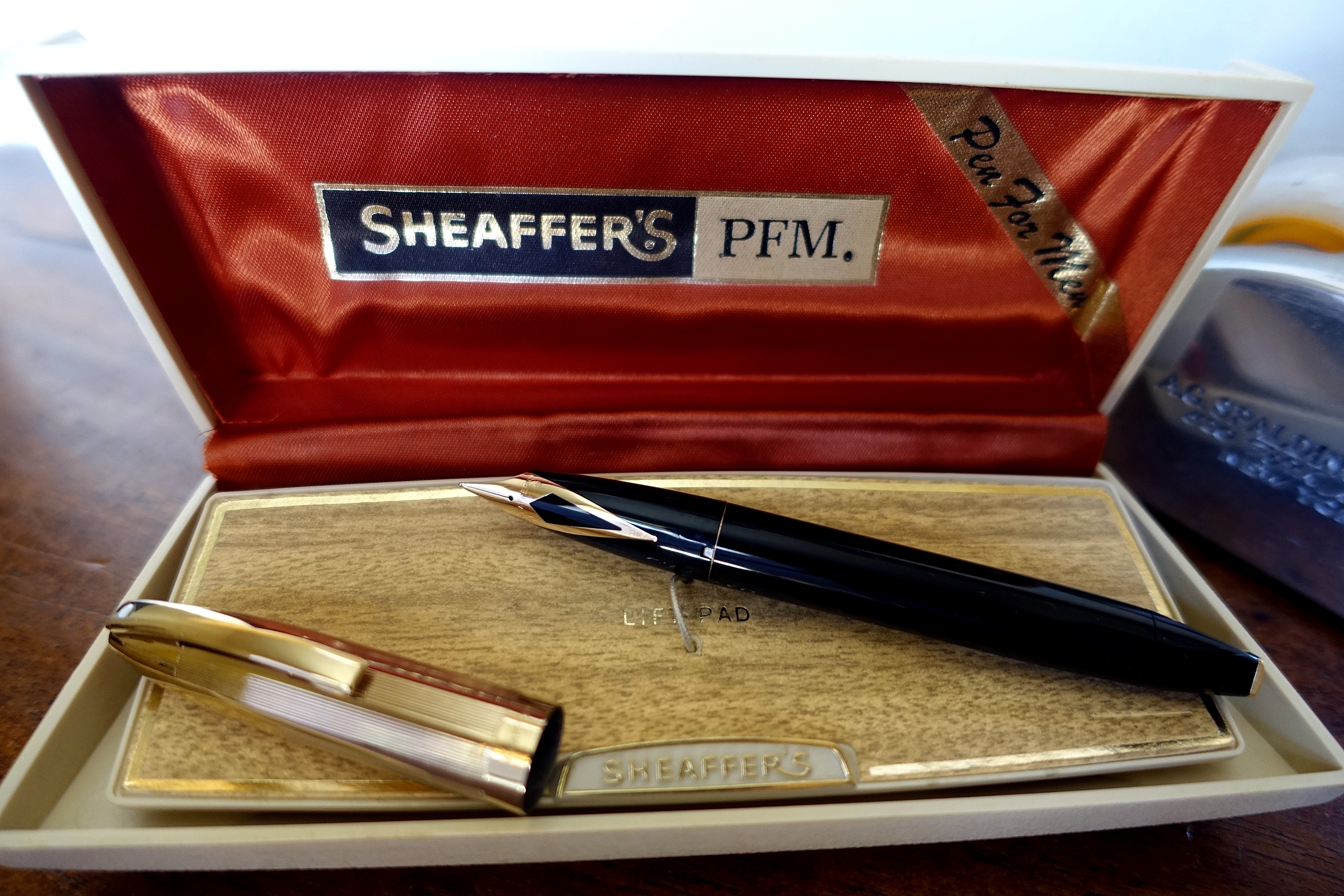 Dopo un paio di terza serie, ho trovato questa Sheaffer PFM quinta serie, e ancor più felice per la custodia, pura plastica in stile anni 60. :)