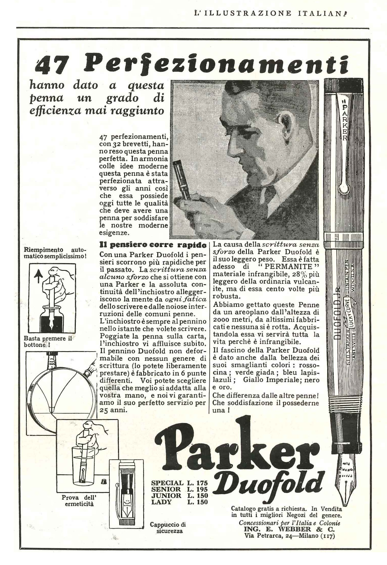 PARKER - Duofold - 1927-05-29. L'Illustrazione Italiana - Anno LIV - N.22, pag.VII