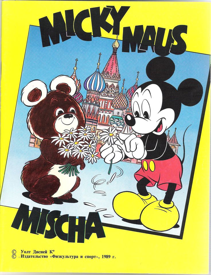 Rappresenta Misha (diminutivo di Mikhail), l'orso designato dall'URSS come mascotte olimpica dell'evento estivo; l'orso, si sa, è l'animale simbolo della Russia e Misha era uno dei personaggi di favole e leggende locali: fu reso graficamente dal disegnatore Cizikof ed ebbe (e tutt'ora ha) un successo incredibile in termini di celebrità ed utilizzo nei più svariati contesti.