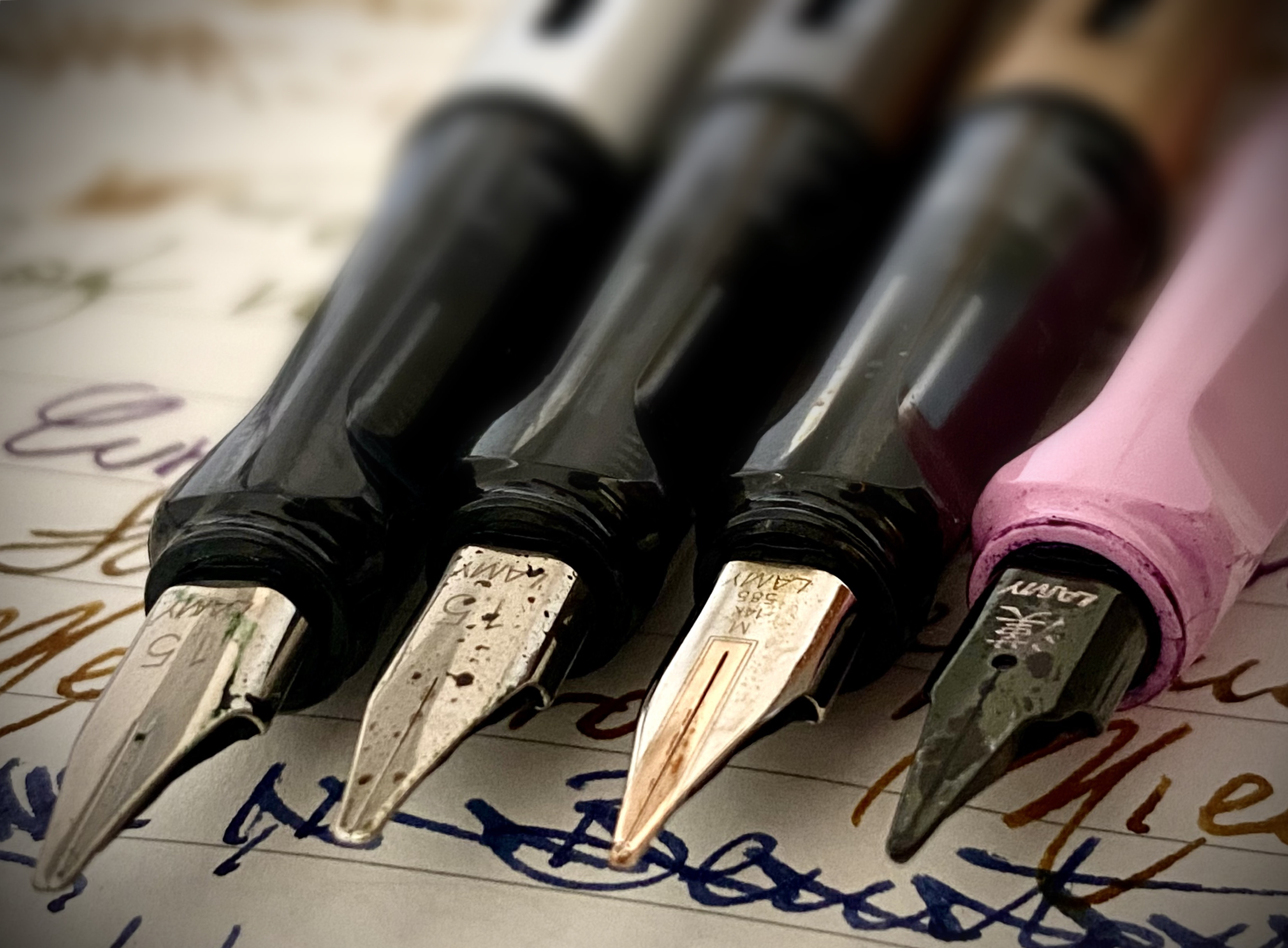 Ventaglio storico. Dal basso: Swan 1500 (1915), Summit H. 65 (1937), Universal (anni 60) e Kaweco Dia 2 (2021).