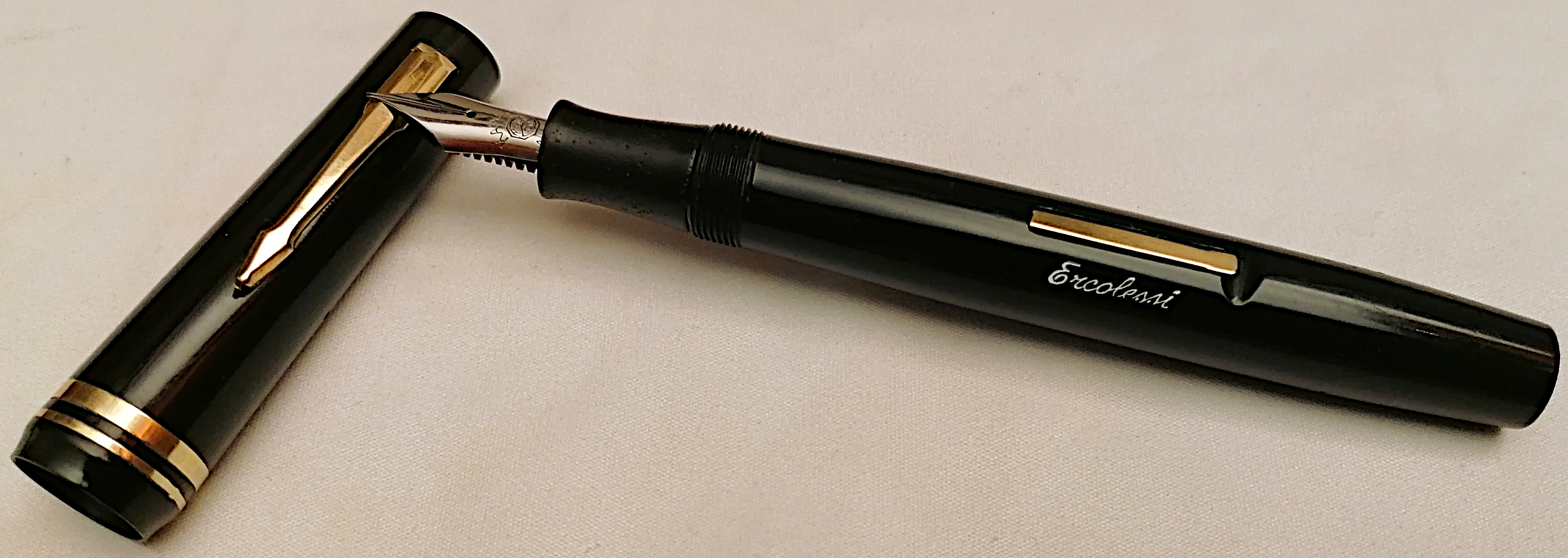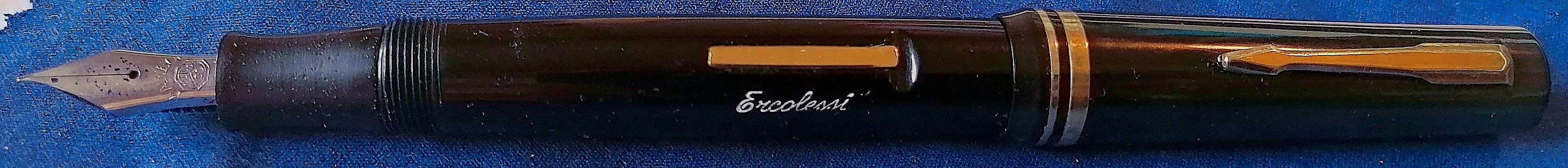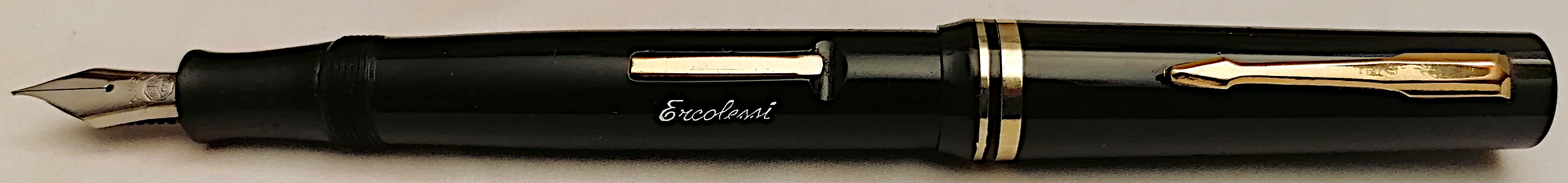 La forma mi ricorda quella Duofold, so che la Omas ha prodotto negli anni '30 penne con il nome Ercolessi, ma non sono riuscito a trovare alcun riferimento sul web per questo modello classico ed elegante.