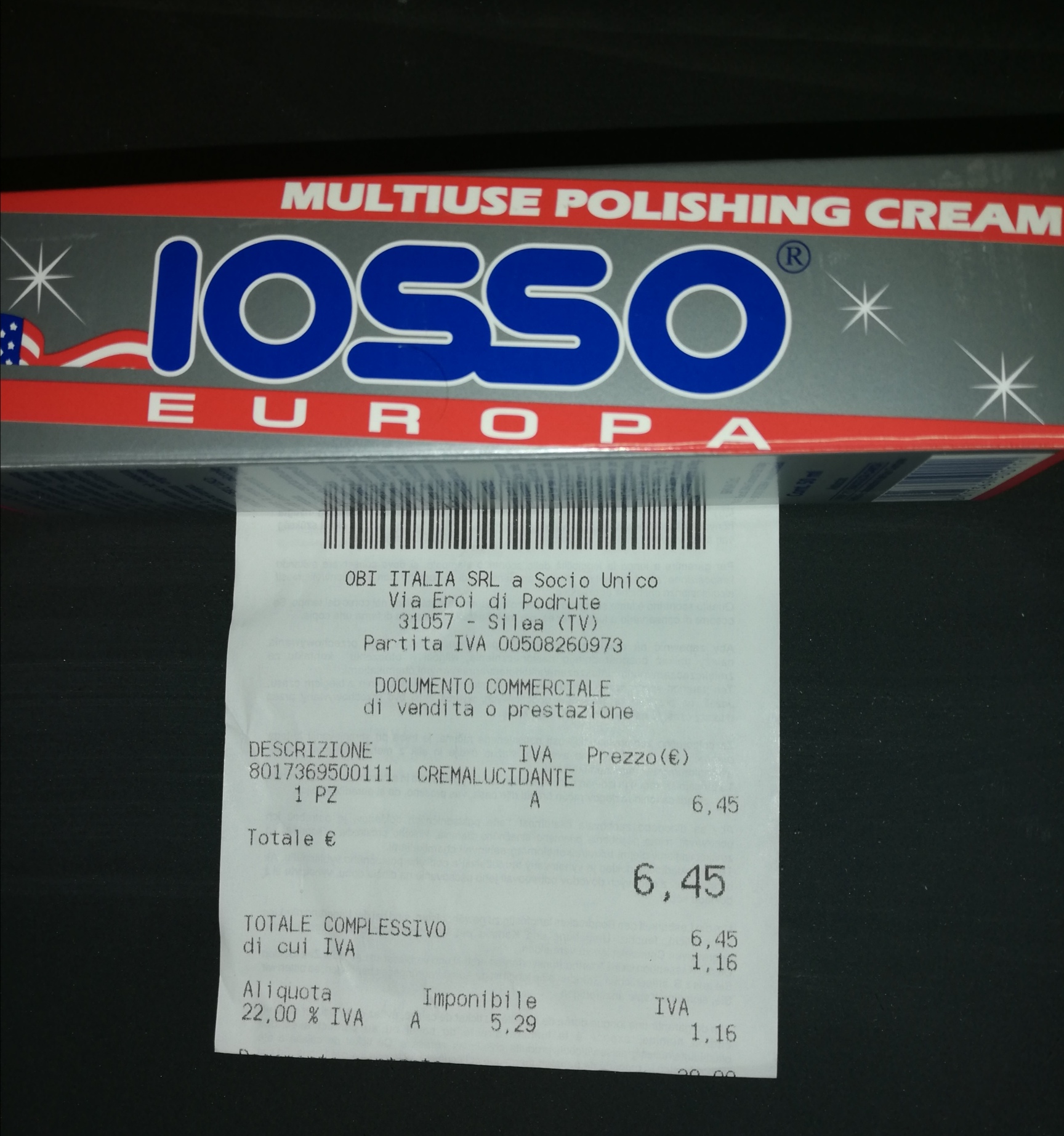 Mi è però balzata agli occhi l'offerta del prodotto da parte di OBI Italia srl che lo distribuisce in un loro punto vendita in provincia di Brescia. Ho perció chiamato il market più comodo a dove mi trovo, dando il codice del prodotto che avevo visto nella comunicazione di disponibilità in rete chiedendo se ne avevano a disposizione, ottenendo conferma dall'addetta al servizio clienti.