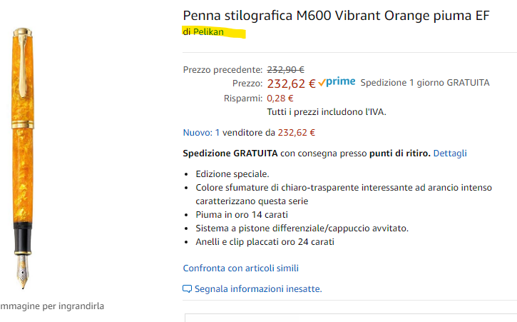 ho trovato questa offerta ma mi sembra strano che ci siano 200 euro in meno rispetto ad altri siti specializzati in stilografiche