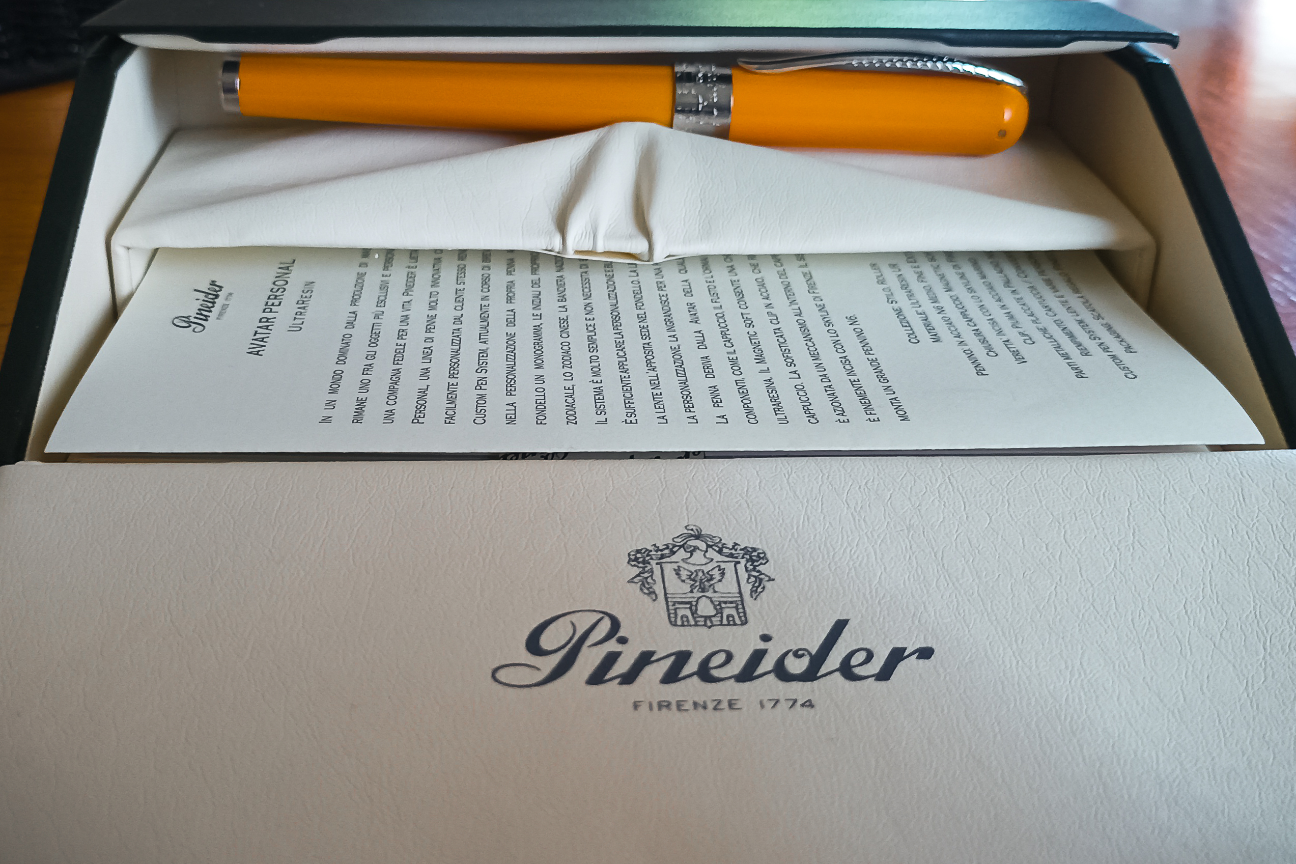Ed è giunta a casa anche la prima italiana: una Pineider Avatar UR "Personal" dal tollerabile color senape (nelle foto-catalogo sembrava molto peggio