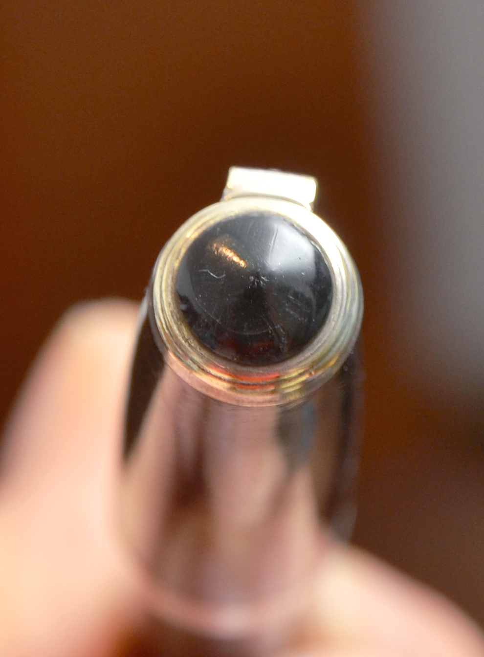 Poichè non era la clip della Challenger, ma quella di una vacumatic, ho deciso di argentarla e passarla a questa che appunto mancava clip e gioiello, restando in attesa di trovarli per la Challenger.