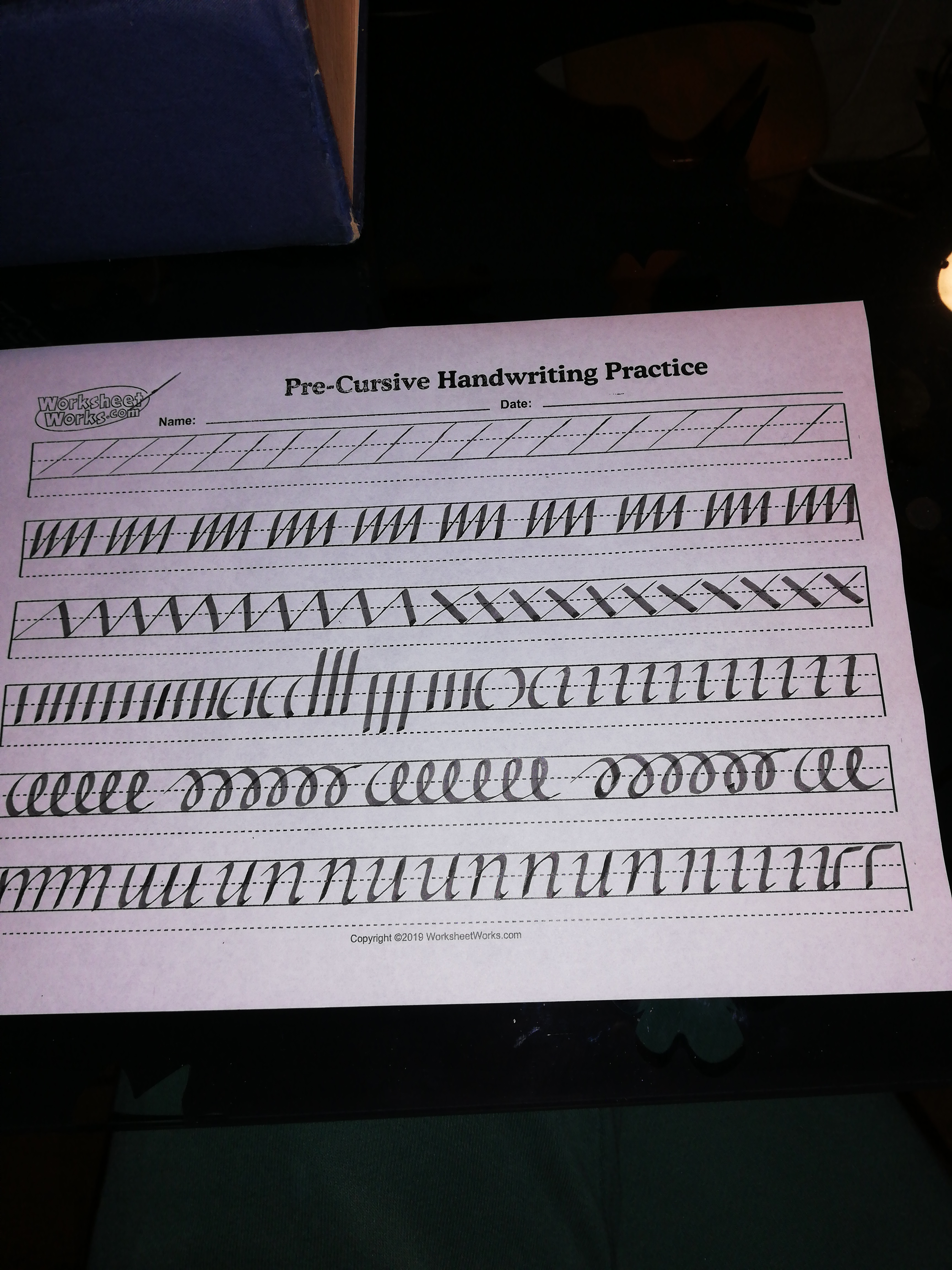 Bene l'esercizio di "parole" (qualsiasi successione di lettere va bene); dovresti dire anche che sensazione hai nello scrivere queste "parole", cioè che differenza trovi tra il ripetere sempre la stessa lettera e invece mettere insieme lettere diverse.
